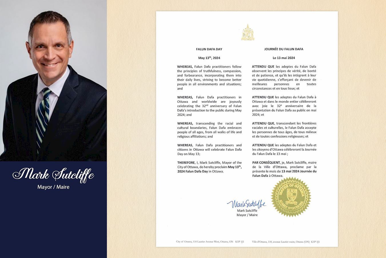 Ottawa, Kanada: Gradonačelnik glavnog grada proglasio Dan Falun Dafa