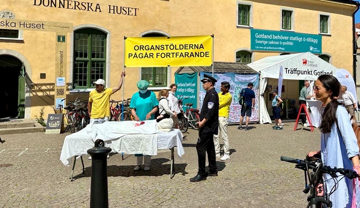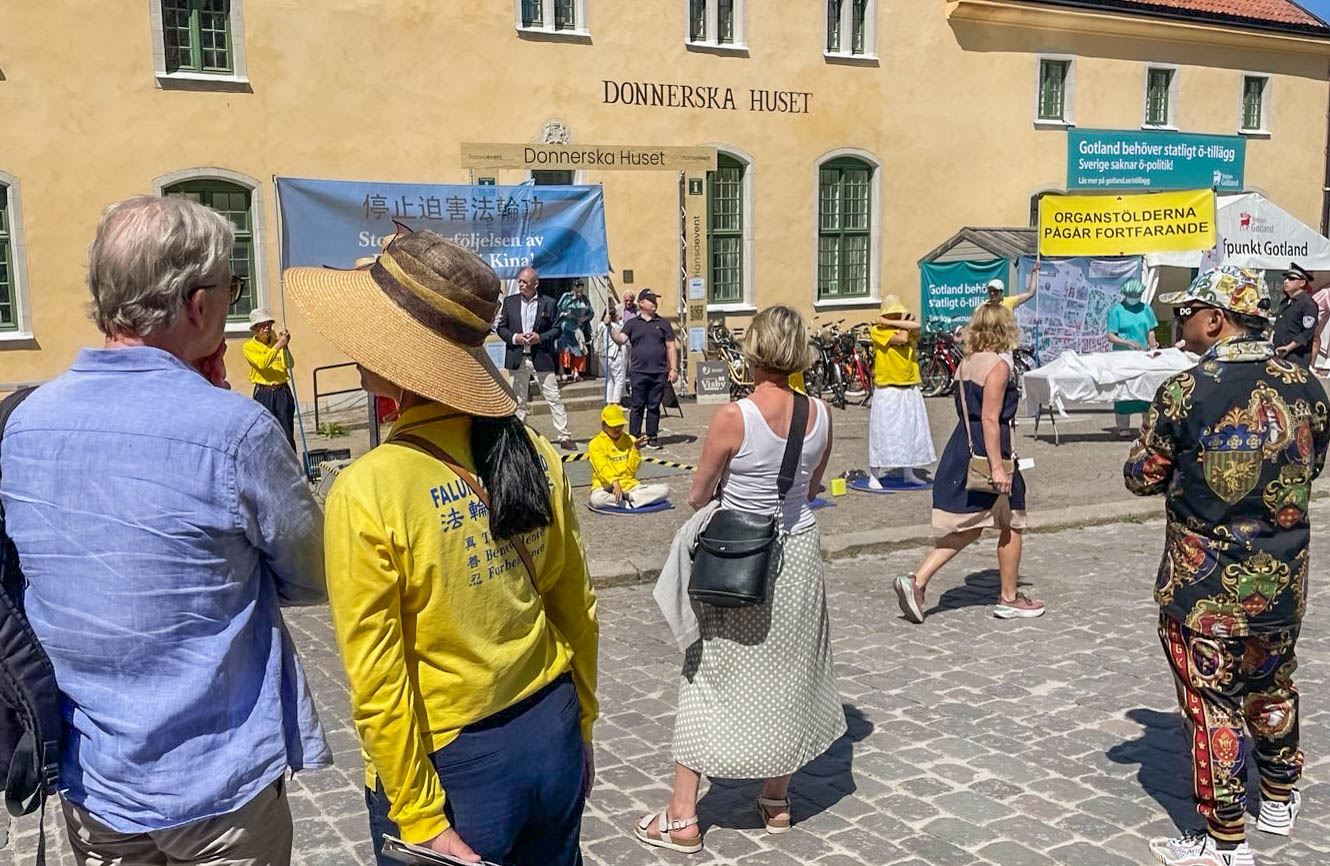 Visby je sjedište okruga Gotland, gdje se Almedalen tjedan održava od 1960-ih. To je forum na kojem predstavnici velikih stranaka u Švedskoj drže govore i predstavljaju svoje političke platforme. Sva četiri dana u podne Falun Dafa praktikanti su demonstrirali vježbe, istaknuli transparente i rekonstruirali prisilno vađenje organa na Donners Plats u središtu grada.