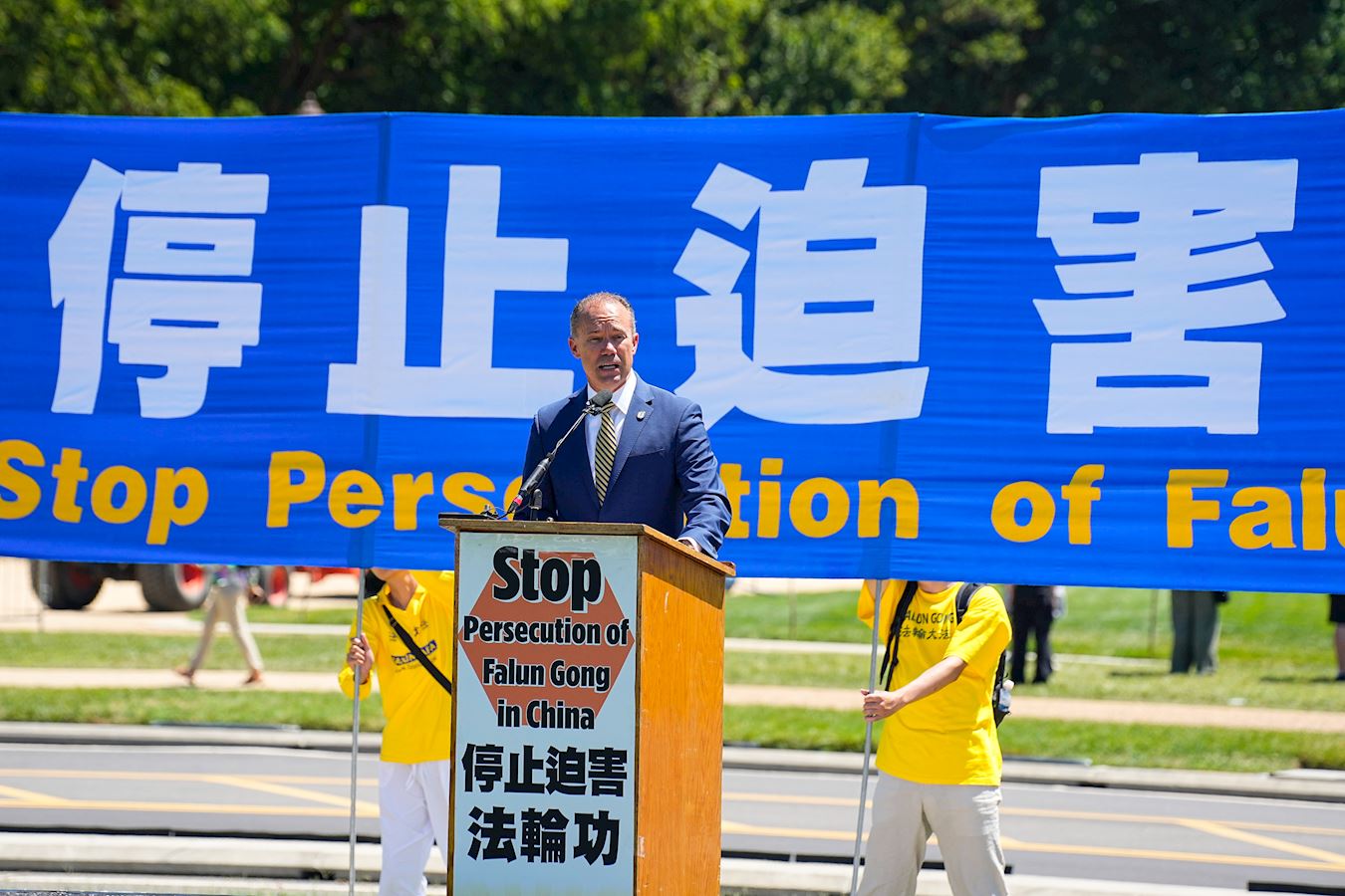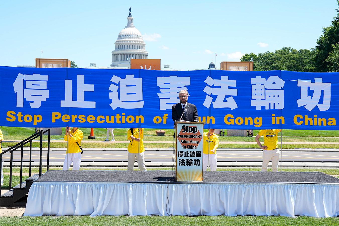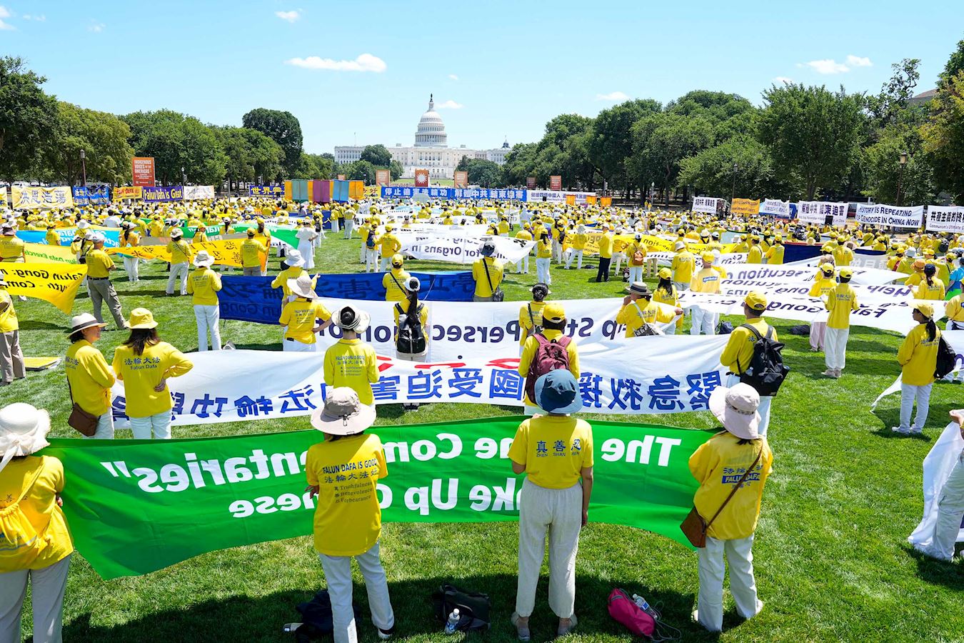 Falun Dafa praktikanti i njegove pristalice su održali skup u National Mall-u u blizini U.S. Capitola 11. jula pozivajući na prekid 25-godišnjeg progona ove duhovne prakse od strane Komunističke partije Kine (KPK). Na skupu je govorilo nekoliko članova Kongresa i visokih zvaničnika, a brojni američki zakonodavci su poslali video pozdrave ili pisma podrške.