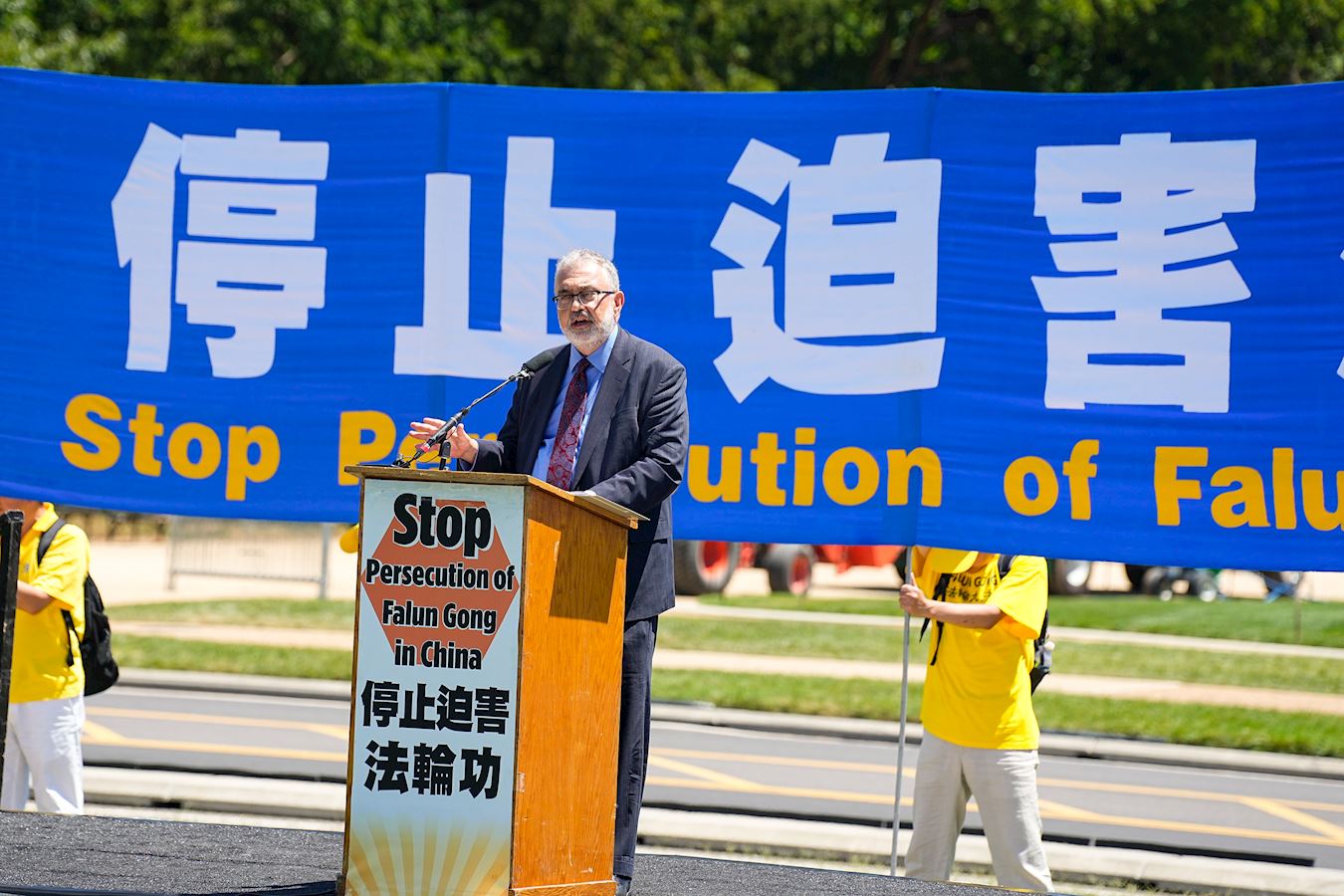 Piero Tozzi, direktor osoblja Kongresne-izvršne komisije za Kinu (CECC), se pojavio i održao govor u ime kongresmena Chrisa Smitha iz New Jerseya, predsjedavajućeg CECC-a, i senatora Jeffa Merkleyja iz Oregona, kopredsjedavajućeg CECC-a.