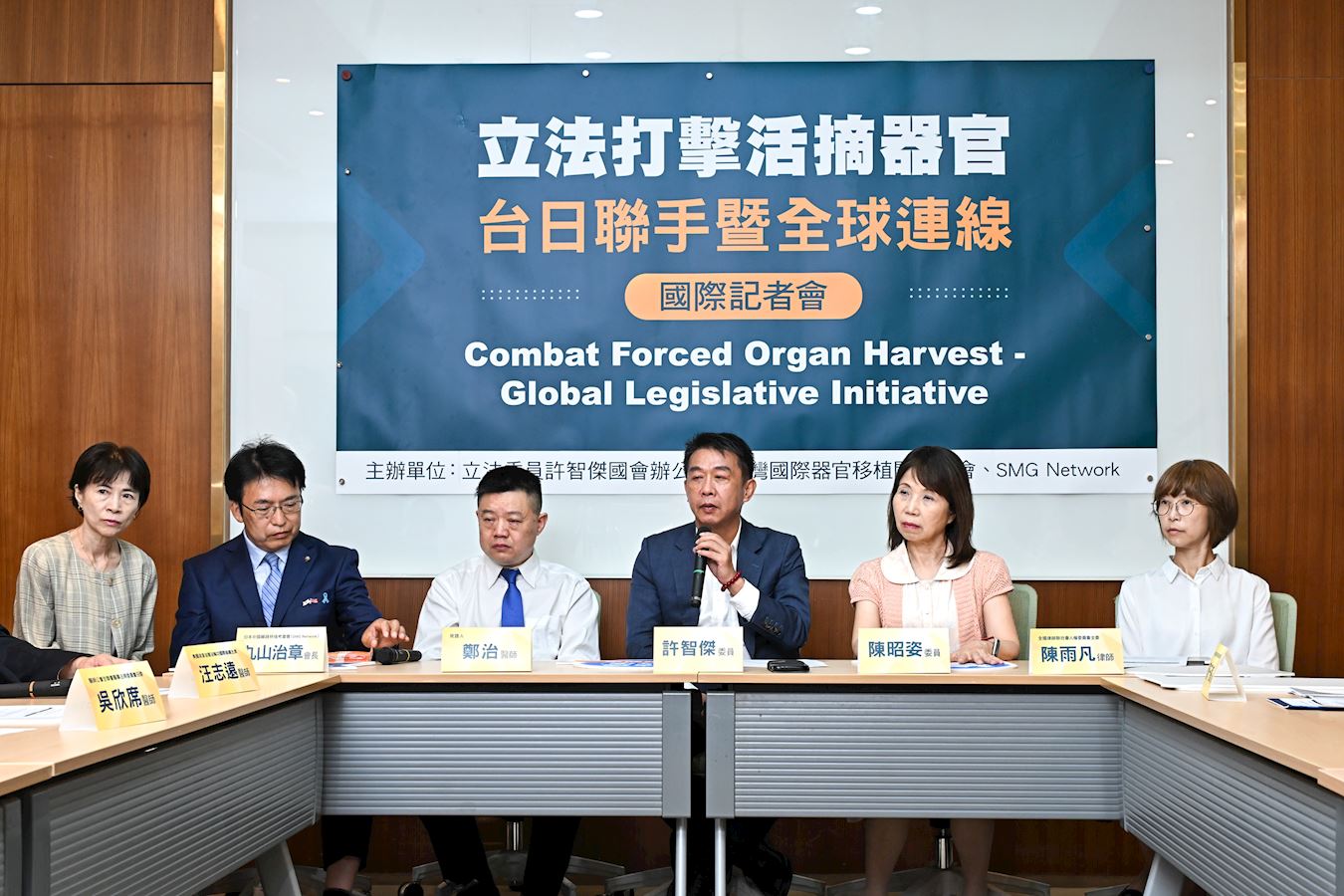 Pored tajvanskih zakonodavaca Hsu Chih-chieh i Chen Zhao-zi, svoju podršku zakonodavstvu o žetvi organa izrazili su i predstavnici Tajvanskog medicinskog udruženja i Tajvanskog udruženja pravnika. Hiroaki Maruyama, predsjedavajući japanske organizacije "Stop medicinskom genocidu – Društvo za proučavanje transplantacije organa u Kini" (SMG Network) također je prisustvovao ovome događaju.