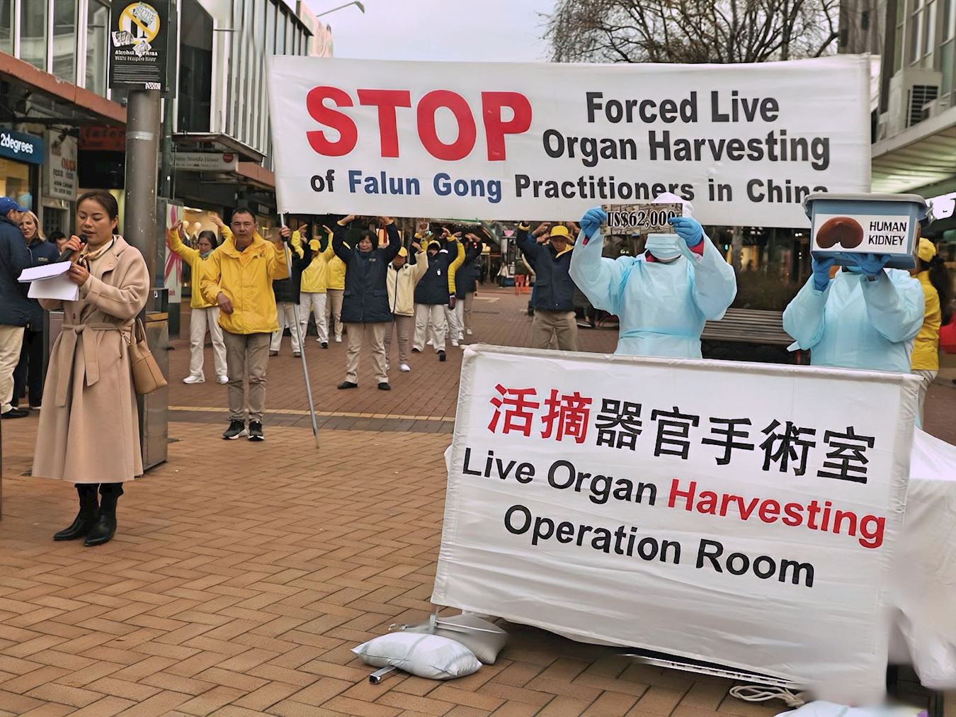 Ispred zgrade parlamenta, praktikanti su opisali kako su bili zlostavljani u Kini zbog svojih uvjerenja, od pritvora i mučenja do prisilne žetve organa. Margo MacVicar, šefica novozelandske Međunarodne koalicije za okončanje zloupotrebe transplantacija u Kini (ETAC), i drugi govornici su pozvali vladu Novog Zelanda da preduzme mjere kako bi zaustavila ove tragedije.