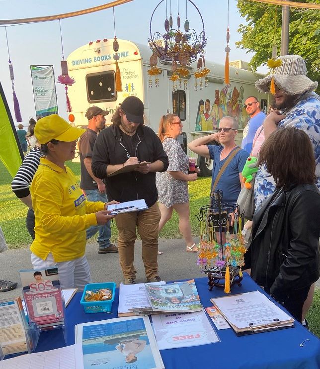 Mladić koji je prisustvovao festivalu se informao o Falun Dafa i potpisao je peticiju. Vratio se te večeri da pomogne praktikantima da pospreme svoje šatore.