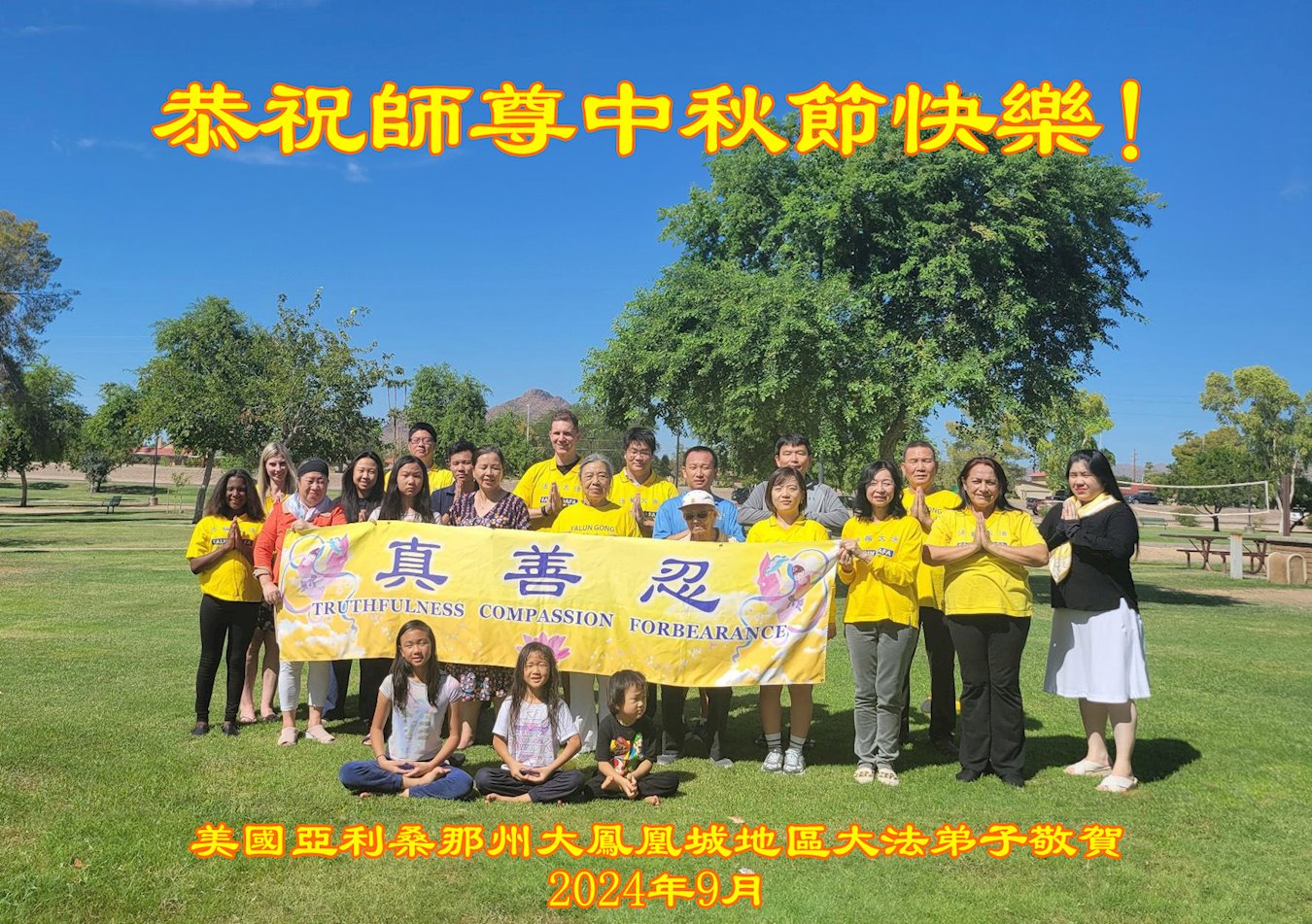 Falun Dafa praktikanti na Zapadu SAD s poštovanjem žele Učitelju Li Hongdžiju srećan Praznik sredine jeseni