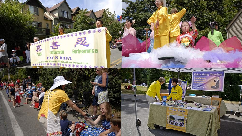 „Na dan obilježavanja slobode i ljudskih prava, dirnulo me vidjeti Falun Gong, grupu koja se progoni u Kini kako slavi slobodu i prikazuje svoj duh na ovom malom američkom otoku“, rekao je gospodin Dewei, kineski stanovnik Bainbridge Islanda u Washingtonu. Bio je sretan vidjeti praktikante Falun Gonga na paradi Dana Nezavisnosti.