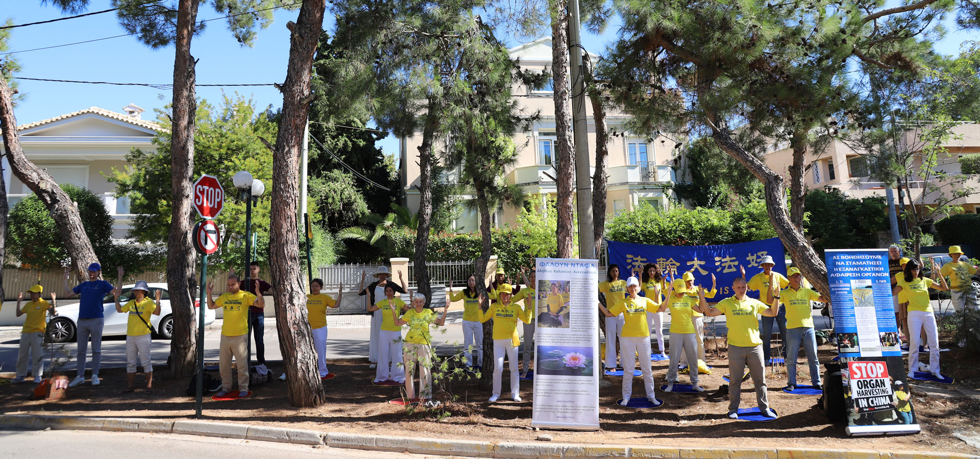 Falun Dafa praktikanti su se okupili ispred kineskog konzulata u Atini u znak protesta zbog 25-godišnjeg progona prakse od strane kineskog režima u Kini. Na skupu održanom 3. oktobra 2024. su govorili Predstavnik grčkog Falun Dafa udruženja i Udruženja “Doktori protiv prisilnog uzimanja organa” (DAFOH) kao i praktikanti. Oni su osudili zločine protiv čovječnosti koje vrši Komunistička partija Kine (KPK) i sistemsku prisilnu žetvu organa od živih praktikanti koji su bili zatvoreni jer su odbili da odustanu od prakticiranja ove prakse. Praktikanti su došli iz Njemačke, Holandije, Švicarske, Turske, Bugarske, Rumunije, Kipra i Grčke kako bi pomogli u podizanju svijesti javnosti o progonu i pozvali KPK da prekine progon.