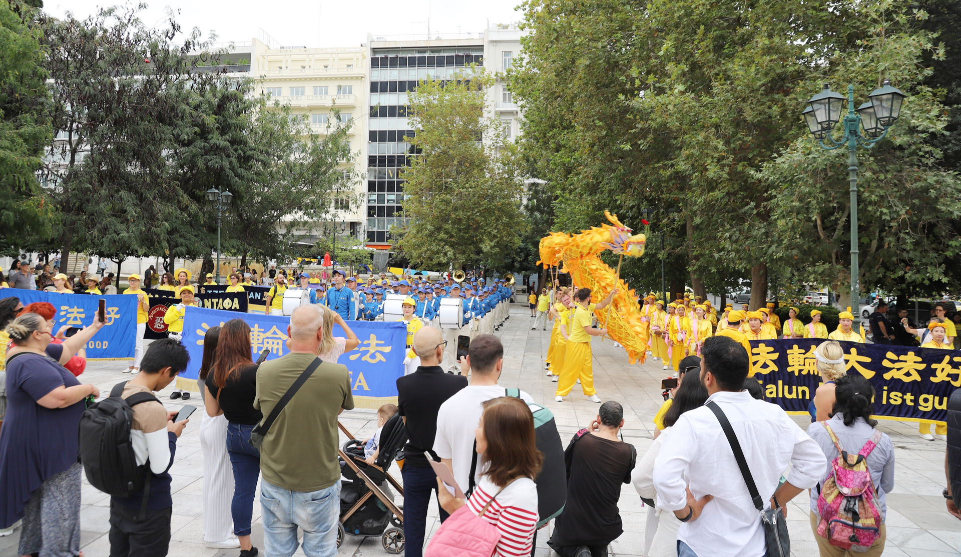 Evropski Tian Guo Marching Band i Falun Dafa praktikanti iz preko 12 zemalja su, 4. i 5. oktobra 2024. godine održali marševe i skupove u Atini, glavnom gradu Grčke. Oni su stanovnicima Grčke i turistima predstavili Falun Dafa (također poznat kao Falun Gong) i pozvali sve dijelove društva da obrate pažnju i pomognu da se zaustavi 25-godišnji progon ove prakse od strane Komunističke partije Kine (KPK).