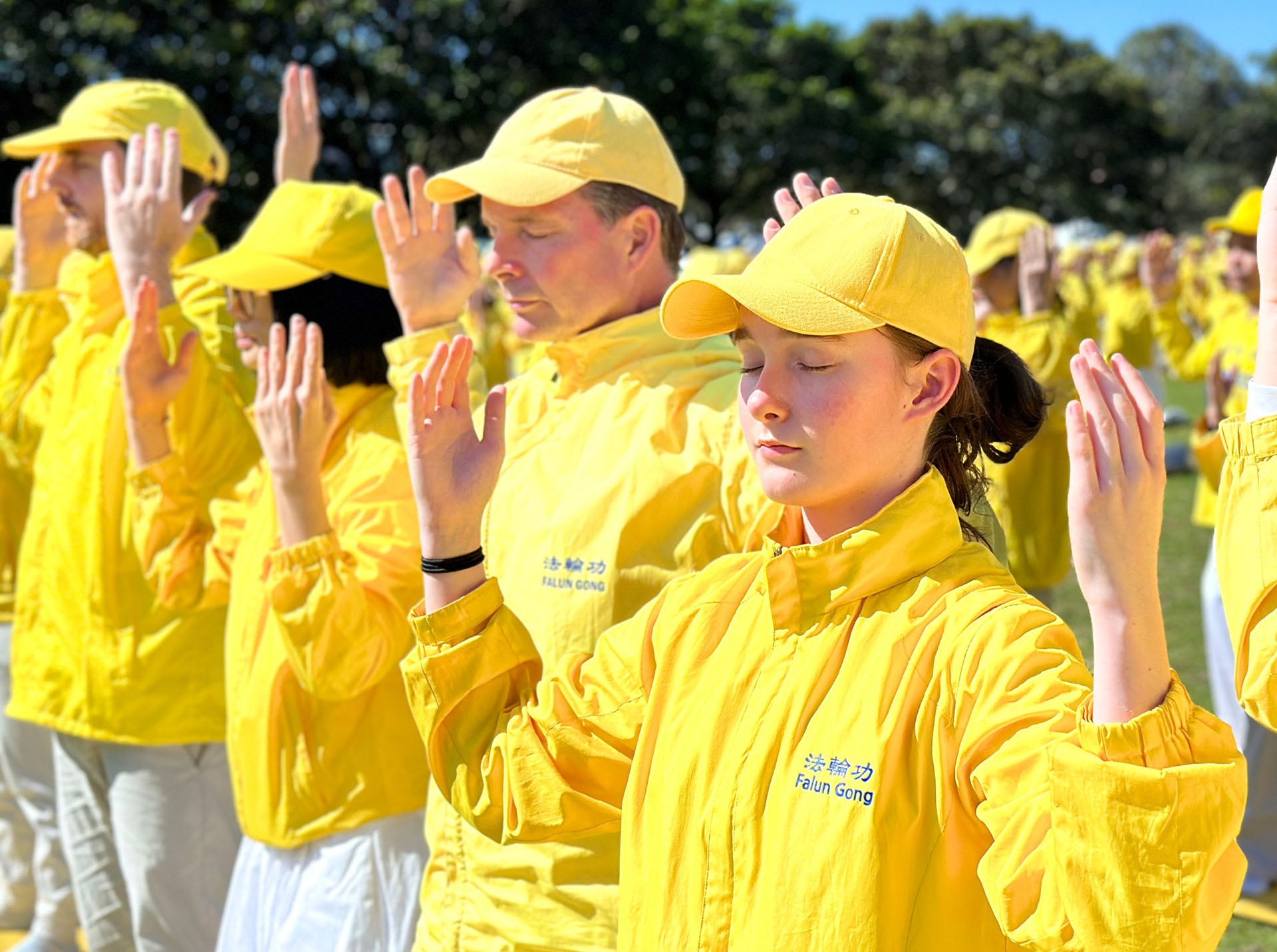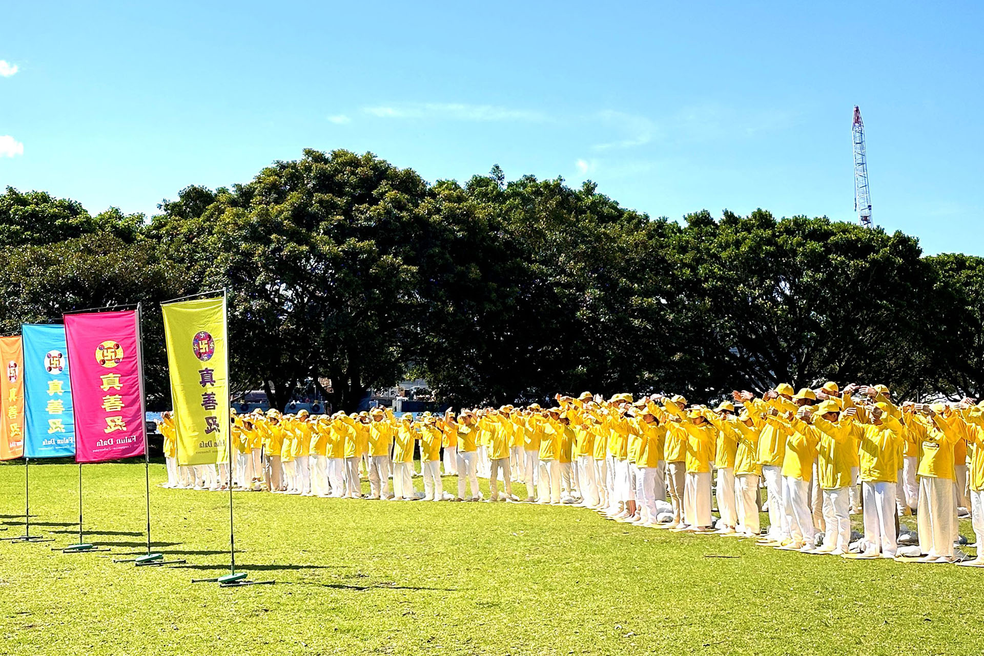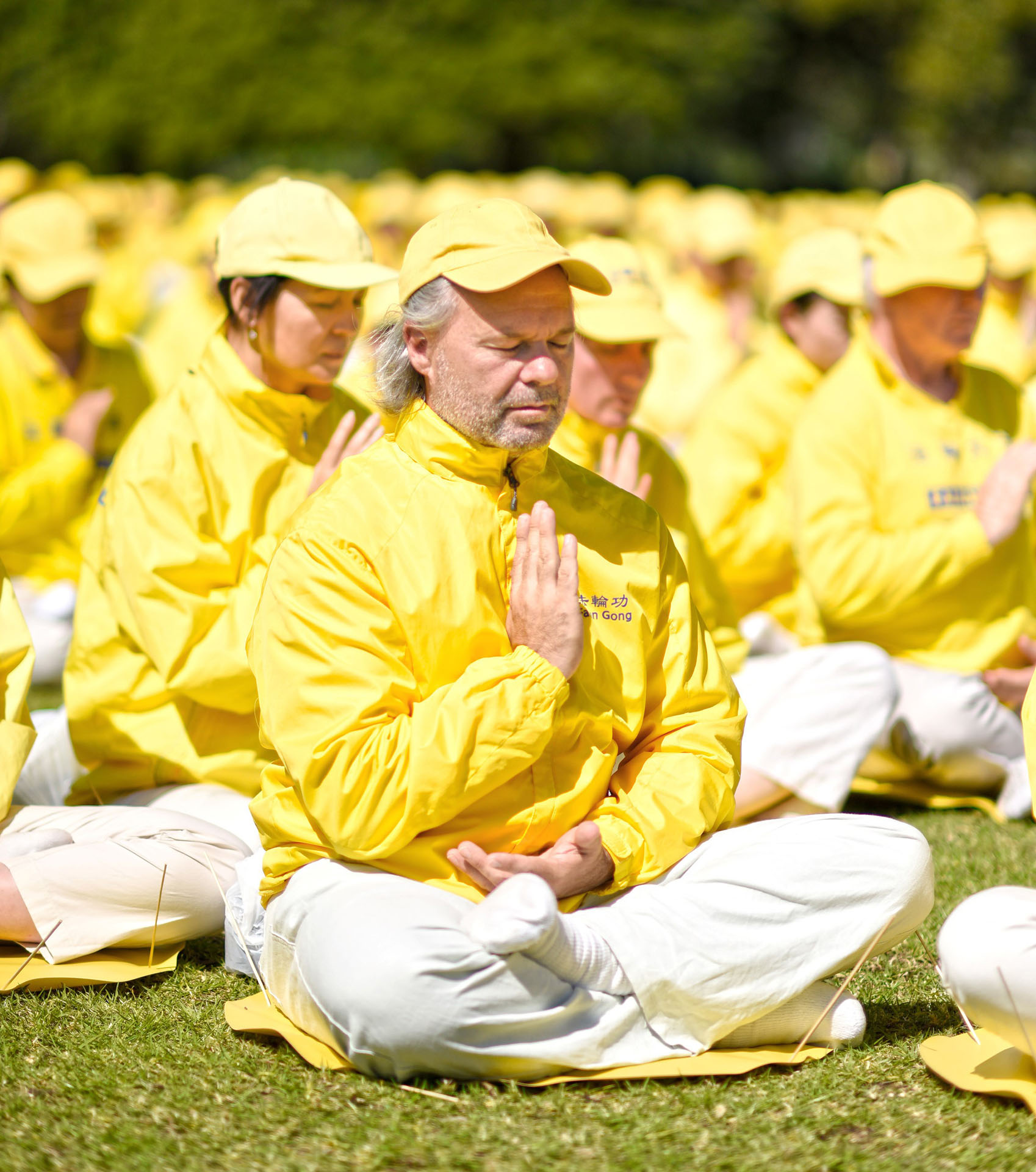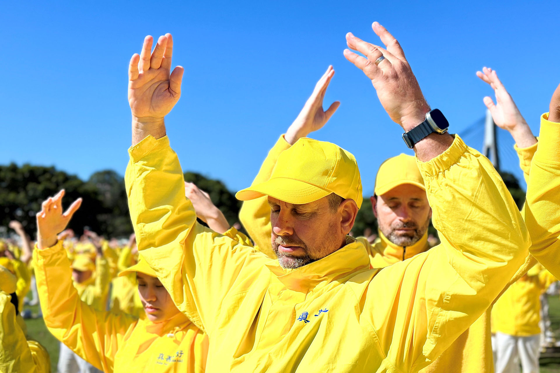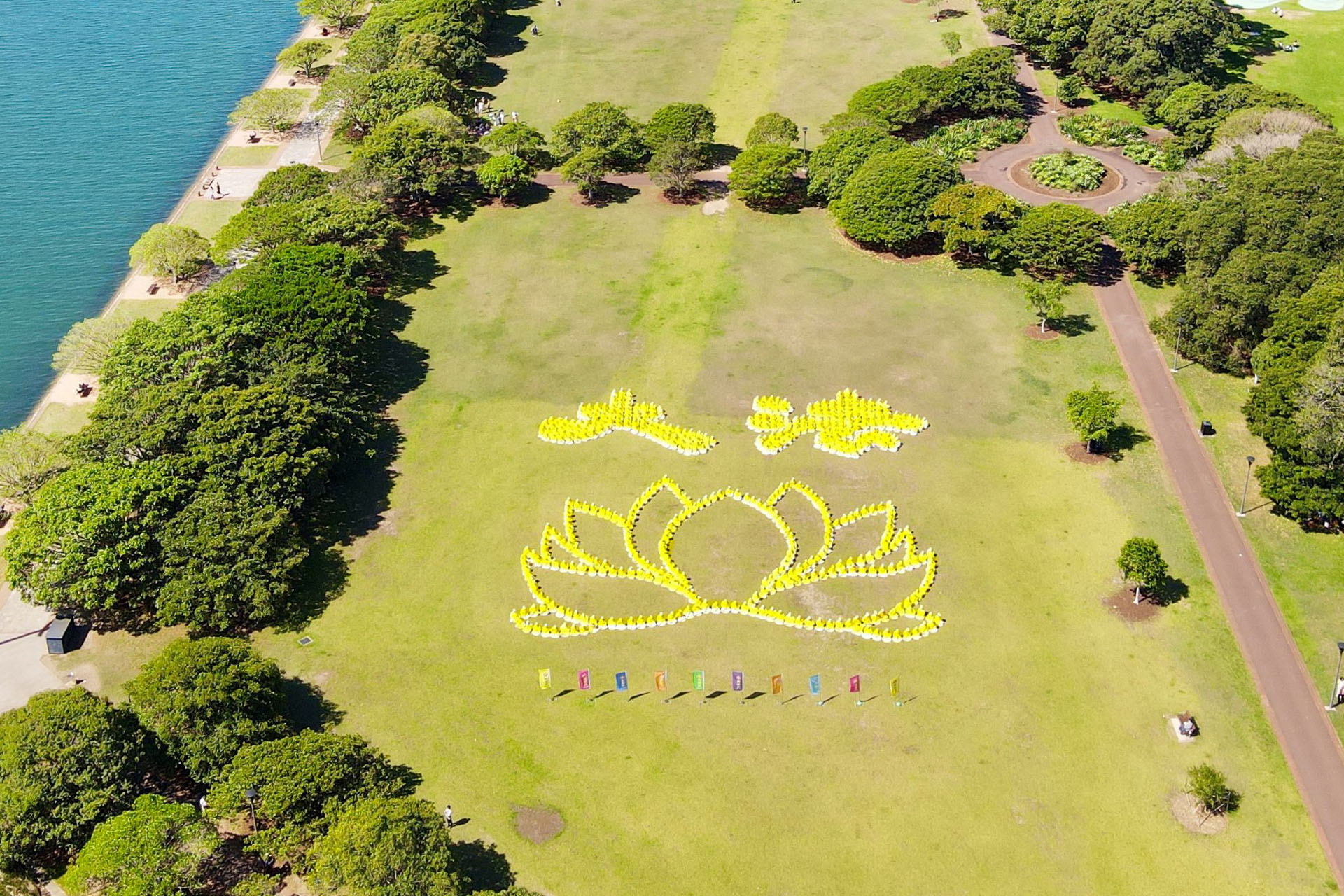 Falun Dafa praktikanti u Sydneyu okupili su se u Jubilee Parku 26. listopada 2024. za grupne vježbe i veliko formiranje znakova. Zajedno s praktikantima iz drugih dijelova Australije, oblikovali su kineske znakove za Da Fa (Veliki Zakon) kao i veliki lotosov cvijet koji je simbolizira proces usavršavanja prirode srca i uma kroz praksu kultiviranja. Žuti znakovi i cvijet izgledali su spektakularno na zelenoj pozadini parka.