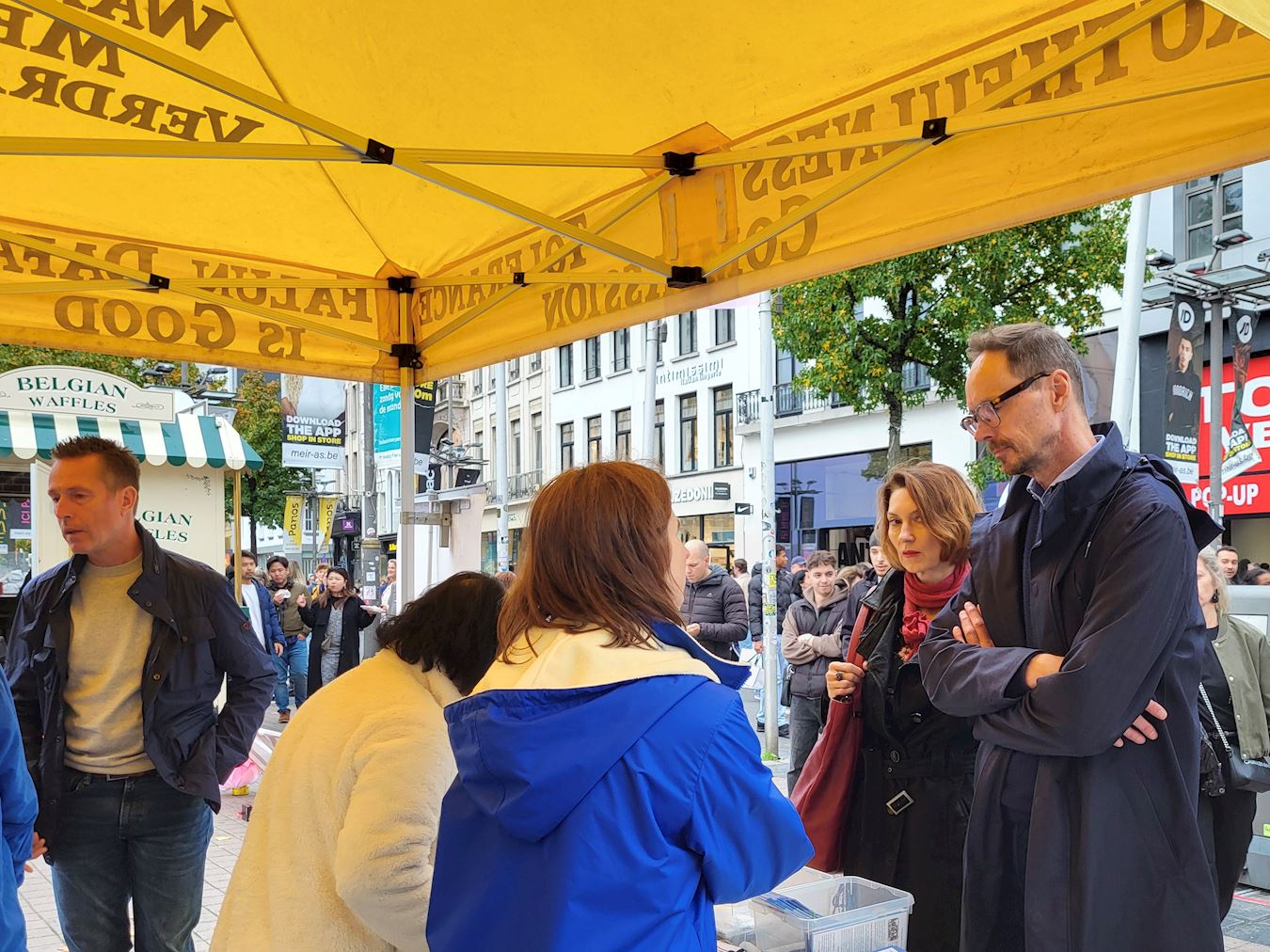 19. oktobra 2024, Falun Gong praktikanti su predstavili Falun Dafu u poslovnom okrugu Antverpena gde su demonstrirali vežbe i razgovarali sa ljudima o 25-godišnjem progonu ove prakse od strane Komunističke partije Kine (KPK). Neki su naučili vežbe, a mnogi su potpisali peticiju kojom se poziva na prekid progona.