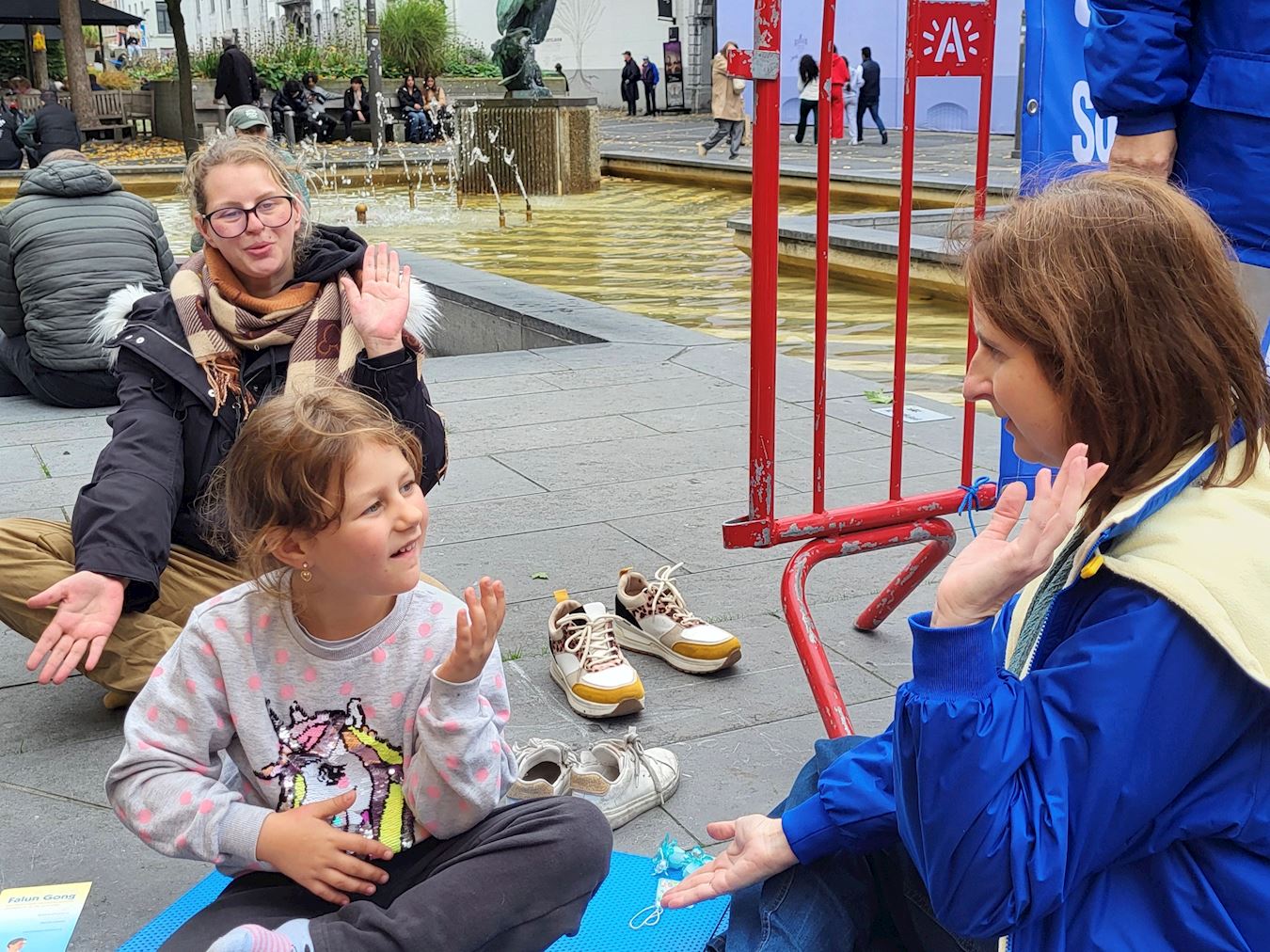 Stefani, njen muž i njihovo troje dece su gledali kako praktikanti rade vežbe. Posetili su štand da saznaju više. Stefani je rekla da joj tradicionalne vrednosti odgovaraju. Kada je saznala za progon, rekla je: „Vlast to ne bi trebalo da radi. Ljudi treba da imaju pravo da biraju svoja uverenja. Meditacija i kultivacija su prave stvari koje treba raditi.” Oni su odmah potpisali peticiju protiv prinudnog uzimanja organa u Kini.
