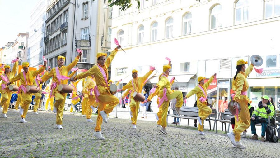 Na Trgu Malinovsky u Brnu, u petak, 18. oktobra, dan prije konferencije, održane su aktivnosti kako bi se ljudi upoznali sa Falun Dafa. Praktikanti su demonstrirali izvođenje vježbi, dijelili informativne materijale i održali paradu kako bi podigli svijest o tekućem progonu ove prakse u Kini.