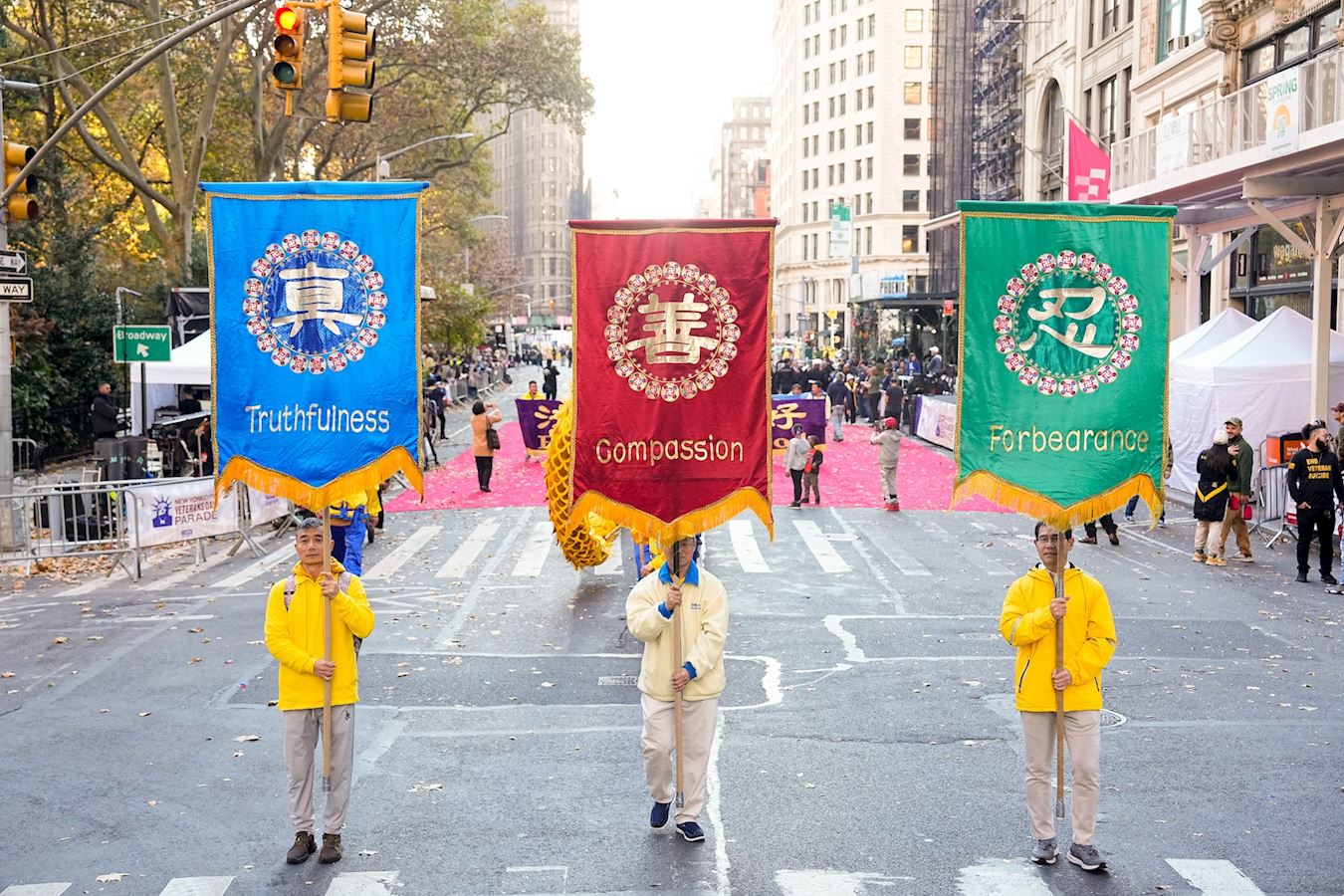 Yi Zhongyuan iz njujorške Falun Dafa asocijacije je rekao da praktikanti predstavljaju principe Istinitosti-Dobrodušnosti-Tolerancije i zagovaraju podizanje morala kroz kultivaciju u zajednicama. Ove tradicionalne vrijednosti su ono najbolje iz kineske tradicionalne kulture, a praktikanti se nadaju da će žitelji i posjetitelji New Yorka od ovoga imati koristi. Falun Dafa praktikanti njeguju slobodu, pridržavaju se ovih principa i zahvaljuju se veteranima na njihovom doprinosu.