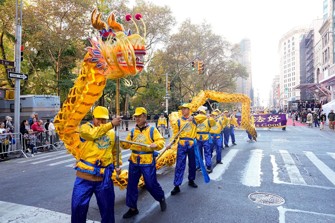 Kao najveća kineska grupa, Falun Dafa praktikanti učestvovali su u paradi već 20. godinu zaredom marširajući na njenom začelju. Doveli su Tian Guo Marching Band, i demonstrirali Falun Dafa vježbe, zajedno sa barjaktarskom grupom, pokretnim splavom, plesom lotosa, dobošarskom grupom i LED vozilom. Impresioniran prezentacijom, širenjem pozitivne energije i transparentima s tradicionalnim vrijednostima na „Najpatriotskoj milji Amerike“, jedan gledalac je rekao: „Ovaj svijet će postati bolje mjesto ako više ljudi bude prakticiralo Falun Dafa.“