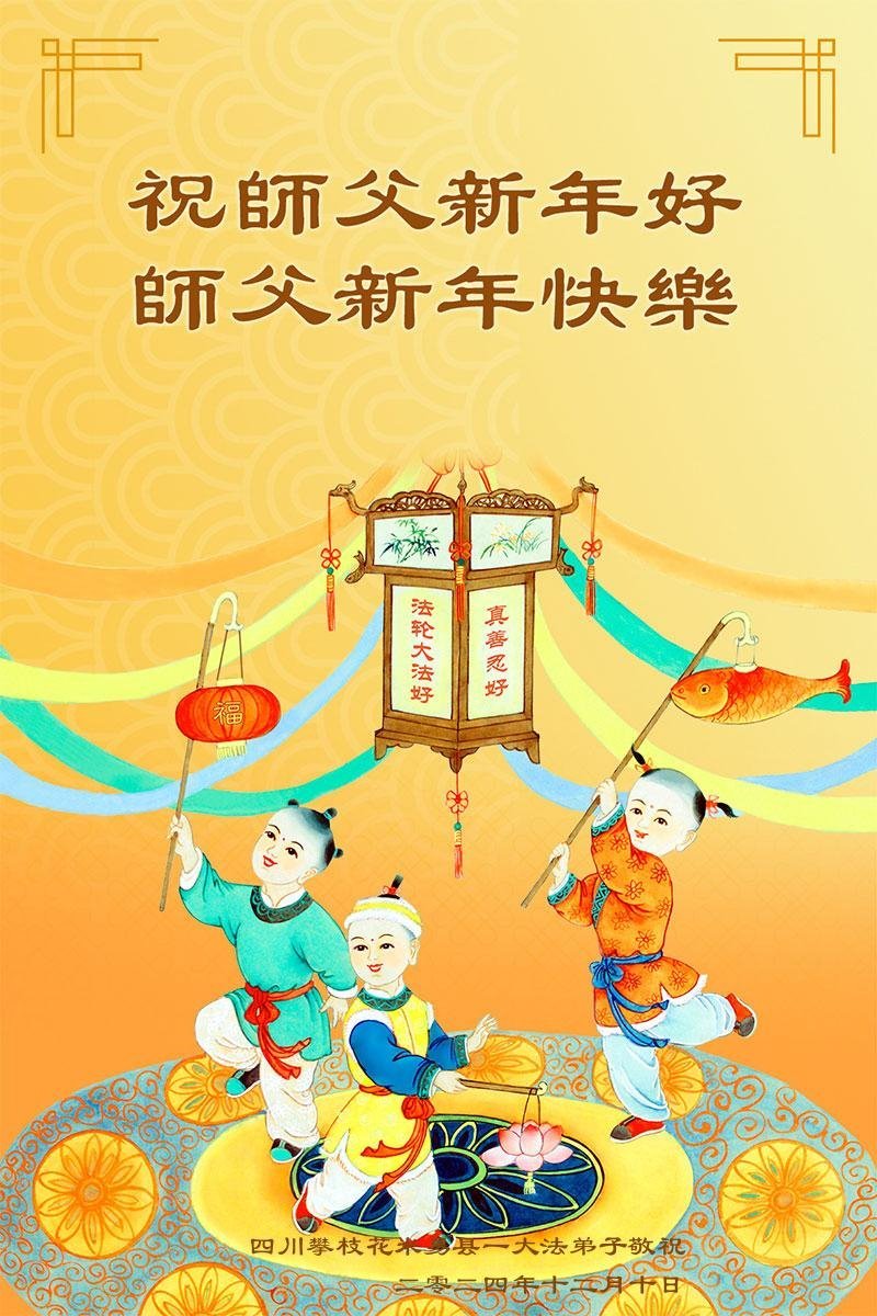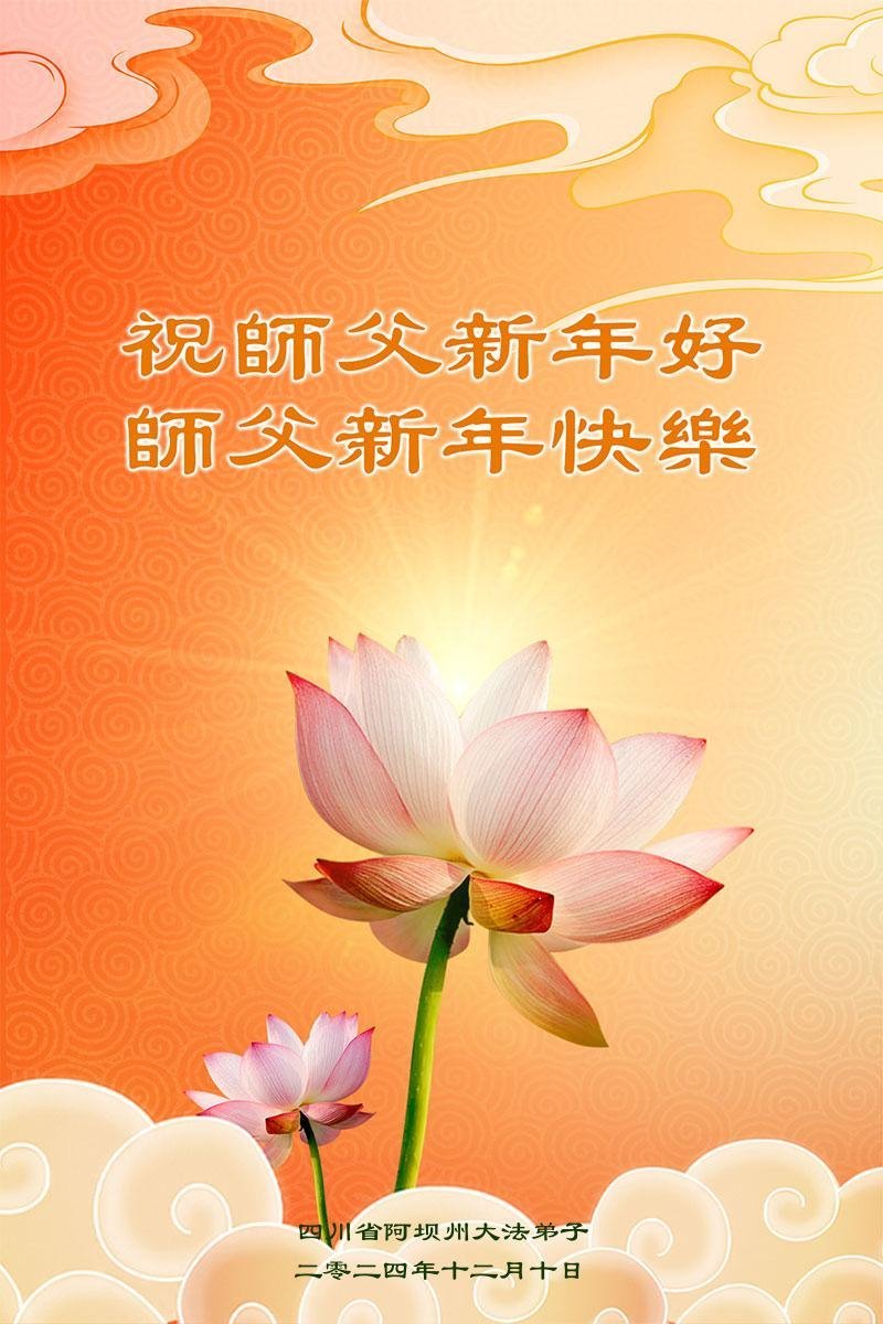 Falun Dafa praktikanti iz provincije Sečuan s poštovanjem žele Učitelju Li Hongdžiju srećnu Novu godinu (21 čestitka)