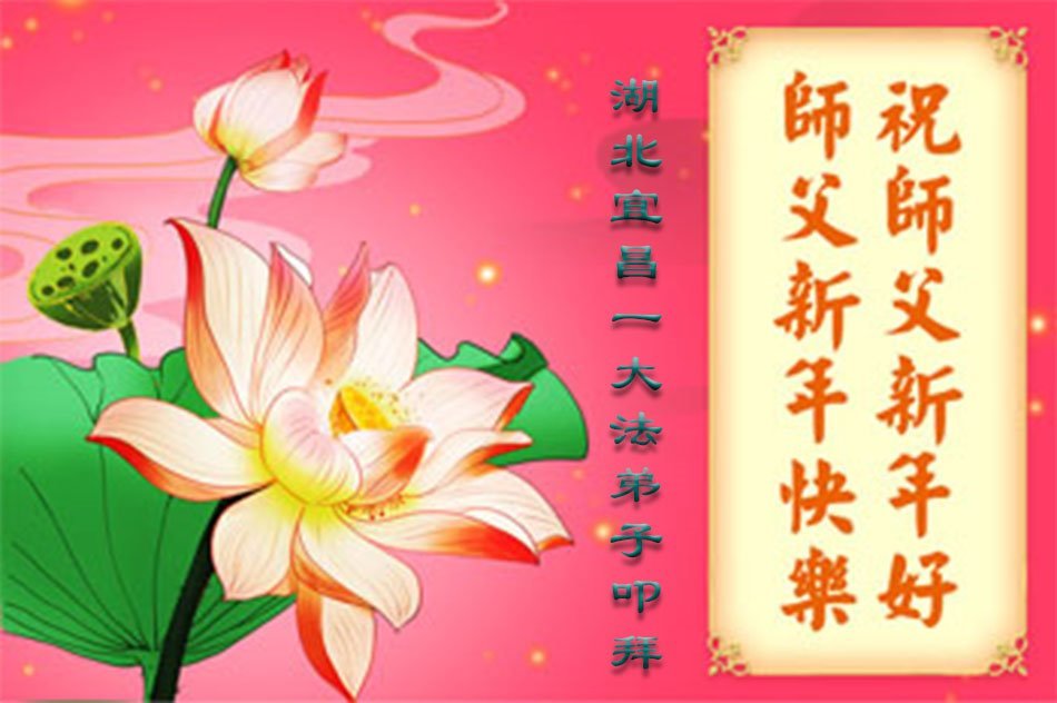 Falun Dafa praktikanti iz provincije Hubei s poštovanjem žele Učitelju Li Hongdžiju srećnu Novu godinu (18 čestitki)