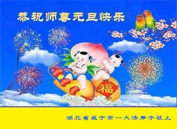 Falun Dafa praktikanti iz provincije Hubei s poštovanjem žele Učitelju Li Hongdžiju srećnu Novu godinu (19 čestitki)
