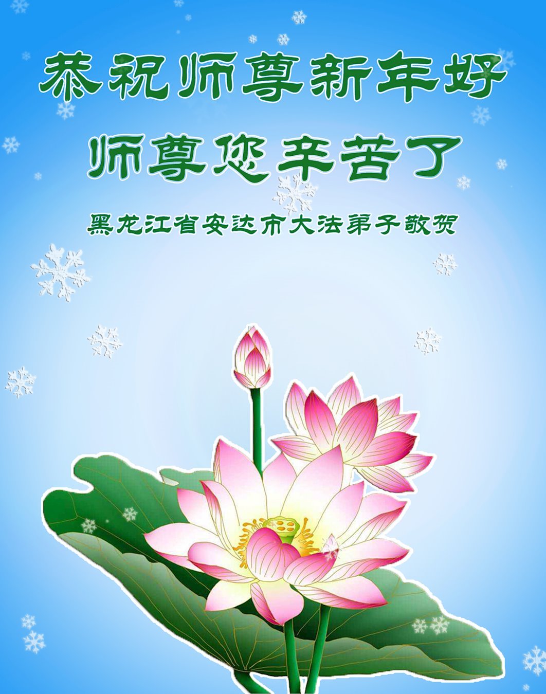 Falun Dafa praktikanti iz provincije Heilongđiang s poštovanjem žele Učitelju Li Hongdžiju srećnu Novu godinu (18 čestitki)