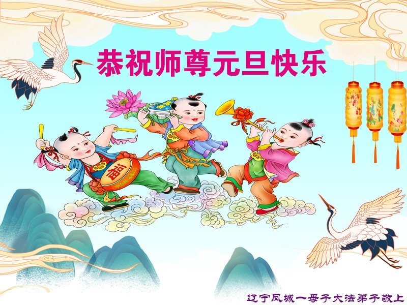 Falun Dafa praktikanti iz provincije Liaoning s poštovanjem žele Učitelju Li Hongdžiju srećnu Novu godinu (18 čestitki)