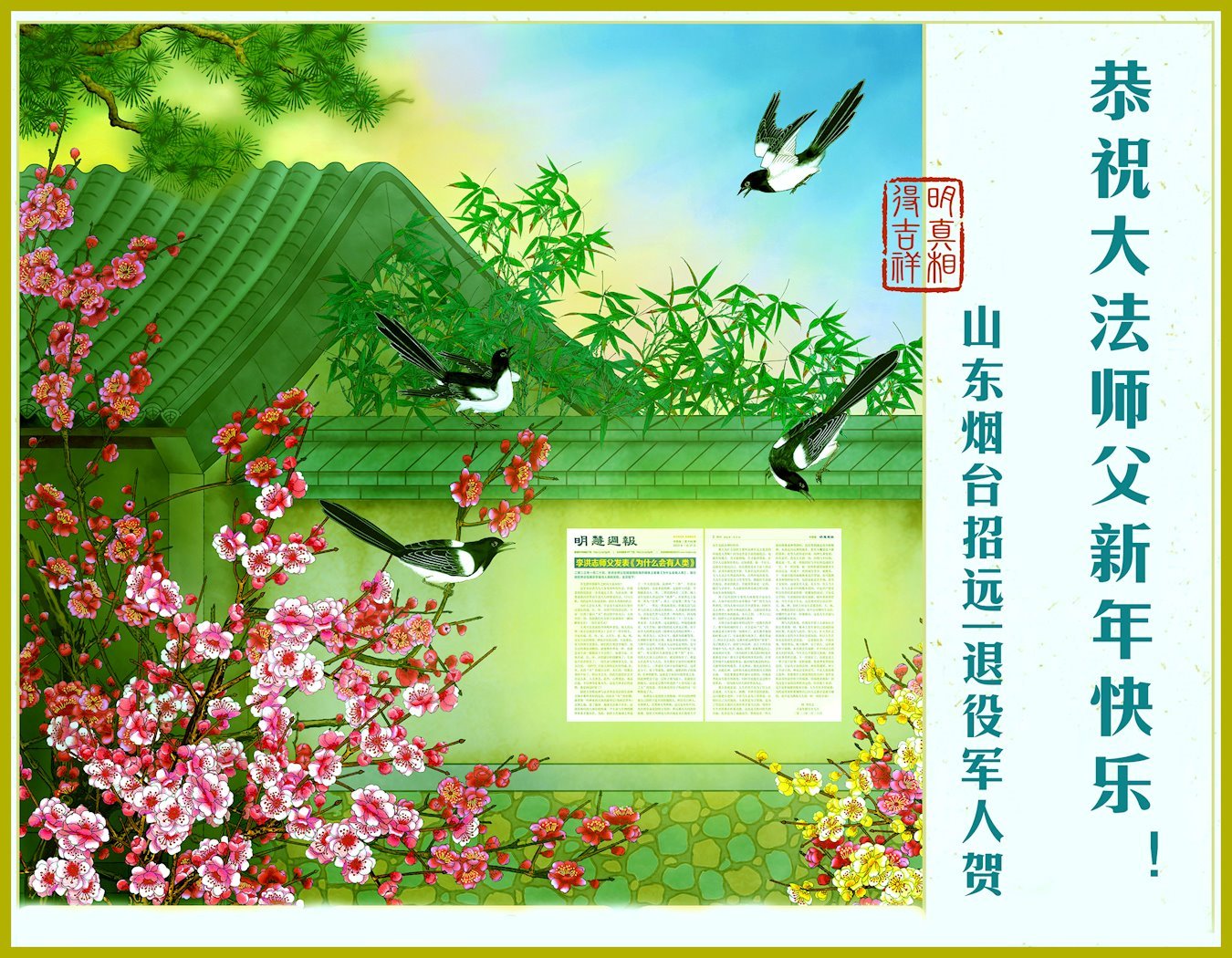 Umirovljeni oficir u gradu Zhaoyuan, provincija Shandong, je rekao da najviše uživa čitajući Falun Dafa materijale jer je sve što je u njima napisano istina. Nakon što je saznao kako Komunistička partija Kine (KPK) maltretira praktikante zbog njihovog uvjerenja, on se odrekao članstva u Partiji još 2005. godine i prestao pohađati političke seminare. “Recitujući 'Falun Dafa je dobar' i 'Istinitost-Dobrodušnost-Tolerancija su dobri', bio sam zdrav svih ovih godina, uključujući i vrijeme pandemije. Moje dijete ima pristojan posao i cijela moja porodica je blagoslovljena”, napisao je u svojoj čestitci. “Prikupio sam mnogo Falun Dafa materijala jer želim da ih sačuvam kao zapis za budućnost. Jedan prijatelj mi je rekao da sam skupio toliko da mogu otvoriti muzej! Ponosan sam na to – Učitelj Li je najpravedniji. To što je rekao je tačno i pomaže našem društvu. Cijela moja porodica želi Učitelju Liju sretnu Novu godinu!”