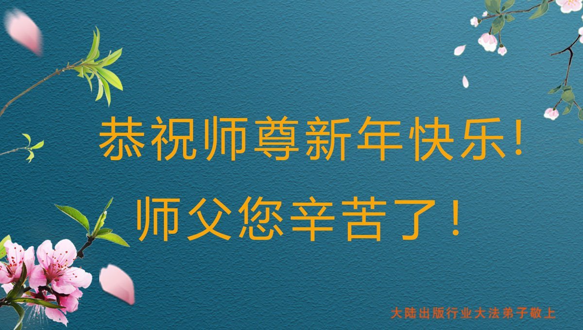 Nadolaskom Nove godine, praktikanti iz susjednih odbora grada Nanjinga, provincija Jiangsu, napisali su da znaju kako je Učitelj silno propatio za praktikante. “Kako vrijeme prolazi, mi praktikanti bismo također trebali biti odlučniji i zreliji. Naše zdravlje i vještine dolaze od Falun Dafa. Naša odlučnost da slijedimo Istinitost-Dobrodušnost-Toleranciju će nam pomoći nadvladati poteškoće i potaknuti naš stalni napredak. Hvala vam, Učitelju Li, i sretna Nova godina!”