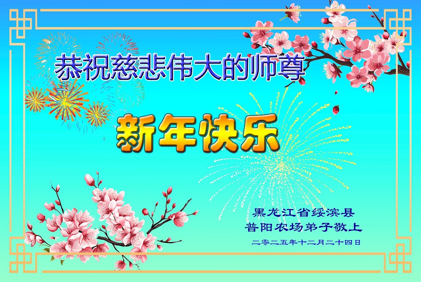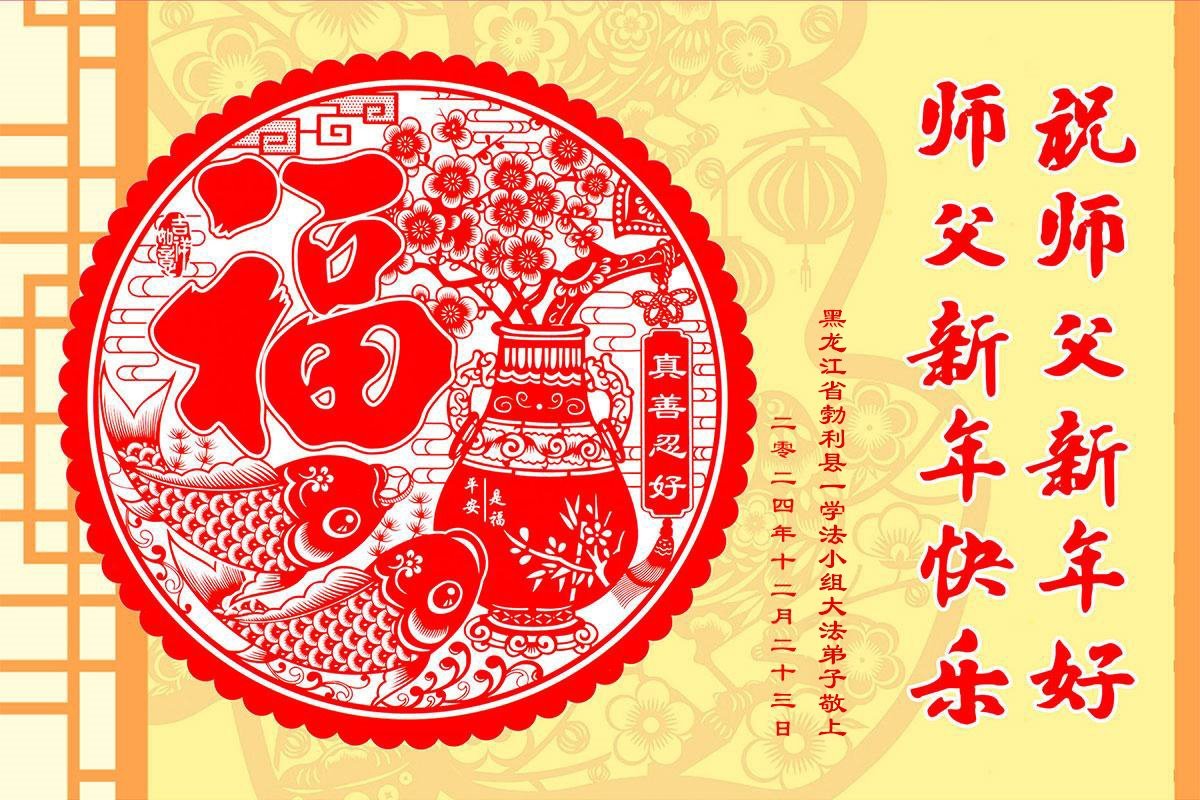 Falun Dafa praktikanti iz provincije Heilongjiang s poštovanjem žele Učitelju Li Hongdžiju srećnu Novu godinu (19 čestitki)