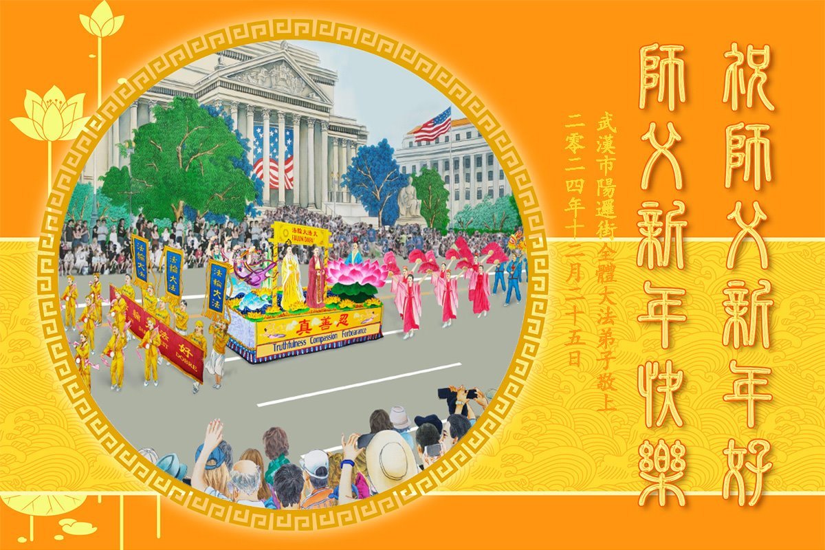 Falun Dafa praktikanti iz provincije Hubei s poštovanjem žele Učitelju Li Hongdžiju srećnu Novu godinu (18 čestitki)