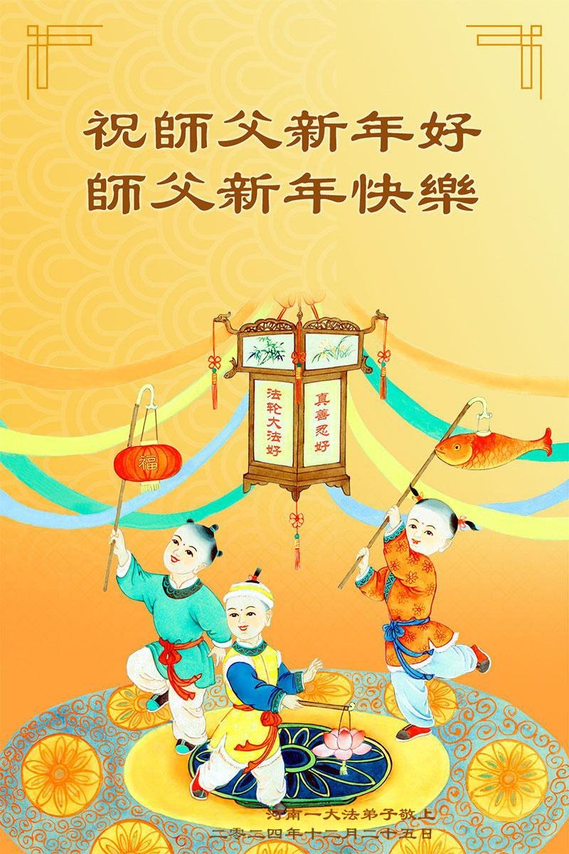 Falun Dafa praktikanti iz provincije Henan s poštovanjem žele Učitelju Li Hongdžiju srećnu Novu godinu (21 čestitka)