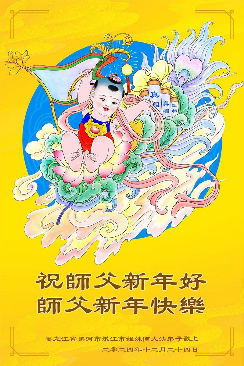 Falun Dafa praktikanti iz provincije Heilongjiang s poštovanjem žele Učitelju Li Hongdžiju srećnu Novu godinu (18 čestitki)