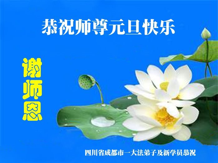 Falun Dafa praktikanti i novi praktikanti iz grupe za učenje Fa u gradu Chengdu, provincija Sichuan, s poštovanjem žele Učitelju sretnu Novu godinu!