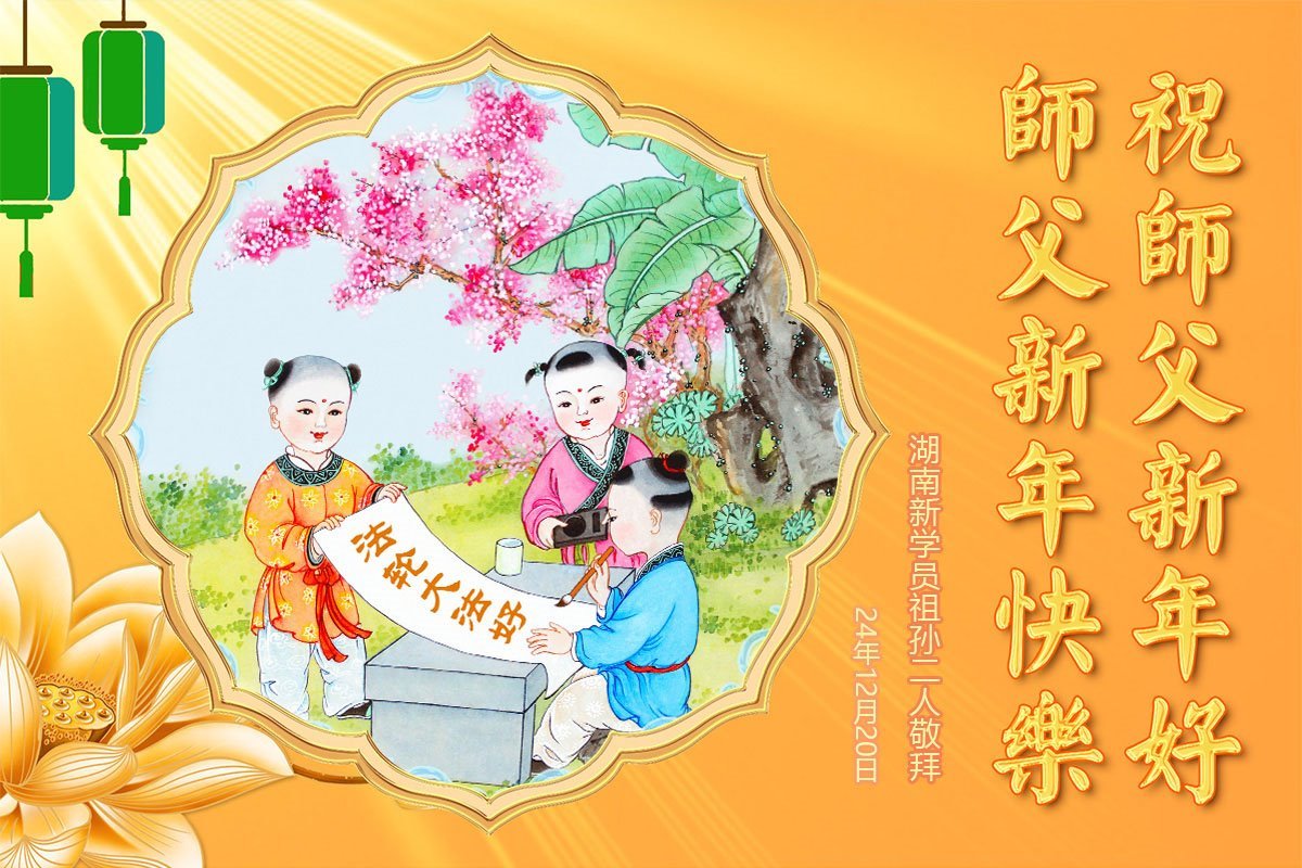 Pozdrav Učitelju! Ja sam novi praktikant koji je upravo dobio Fa. Učitelju, spasili ste me kad mi je život visio o koncu. Vrlo sam zahvalan Učitelju. Posjetio sam gotovo sve hramove u Kini, ali svi su htjeli samo novac. Samo je Učitelj ovdje za živa bića! Kako se Nova godina bliži, šaljem pozdrave dobrodušnom, velikom Učitelju! Učitelju, sretna Vam Nova godina!