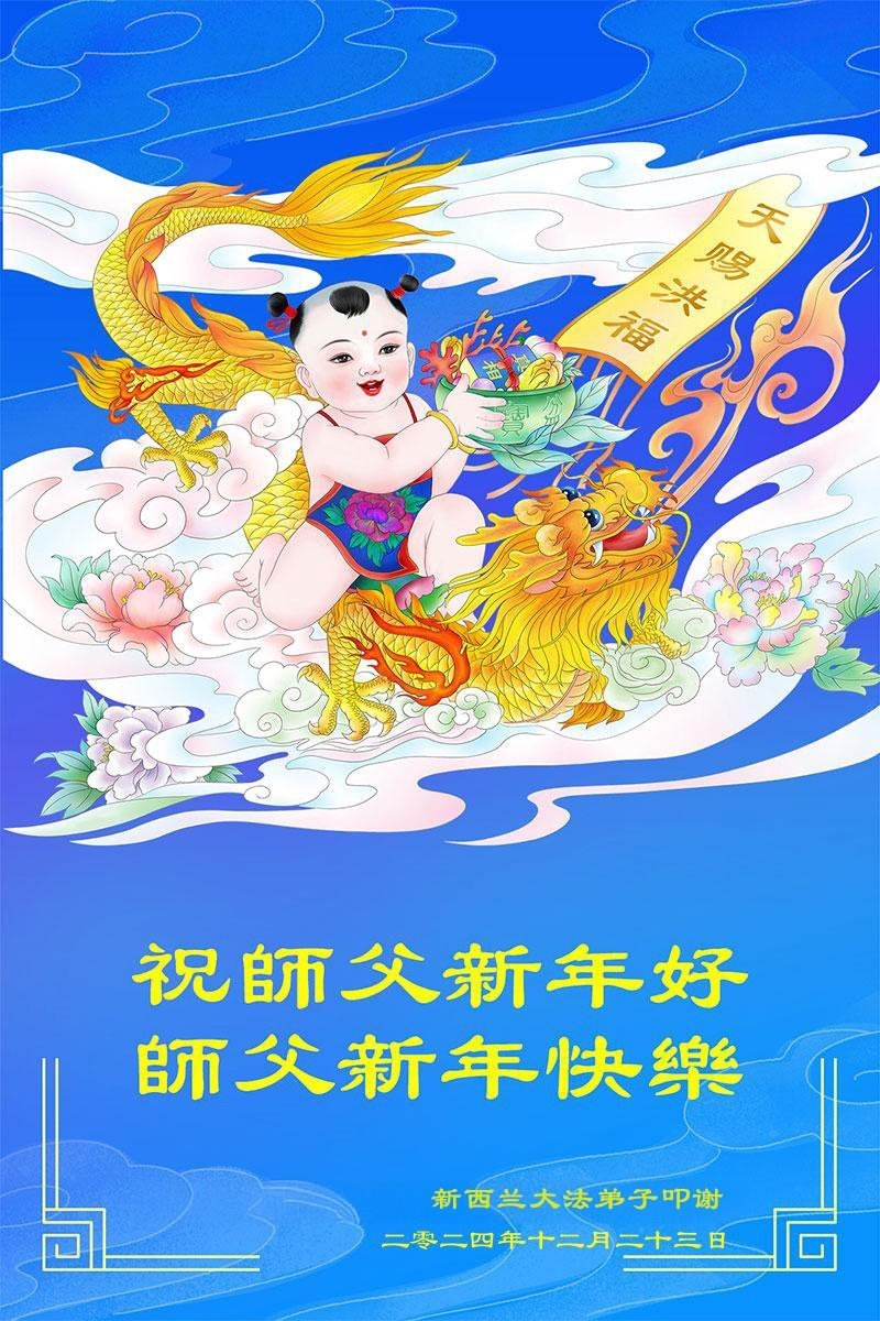 Falun Dafa praktikanti iz grupe za učenje Fa na Novom Zelandu s poštovanjem žele Učitelju sretnu Novu godinu