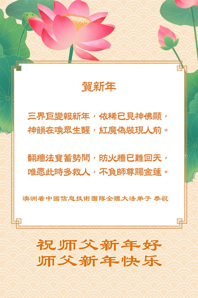 Falun Dafa praktikanti iz Australije i Novog Zelanda s poštovanjem žele Učitelju Li Hongzhiju sretnu Novu godinu