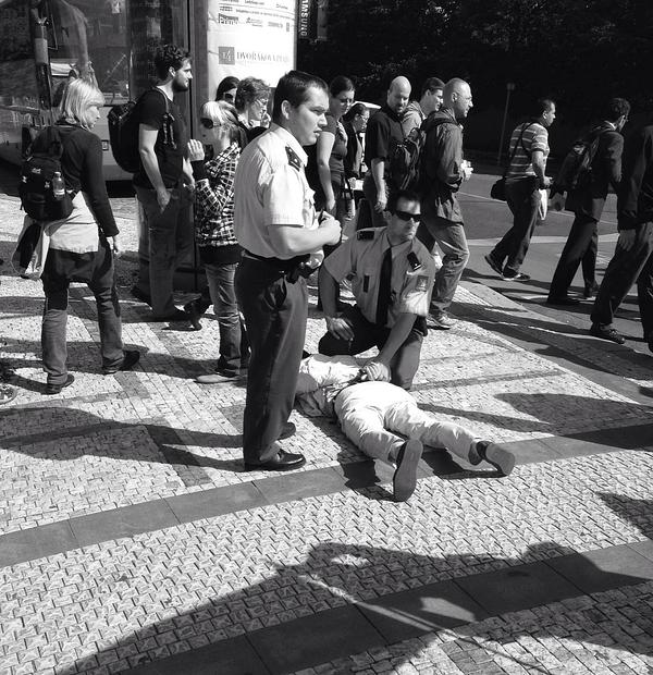 Kako se povorka kineske delegacije približavala praškom dvorcu, službenik kineskog veleposlanstva i članovi odbora za doček koje je poslala KPK, nasilno su odgurnuli protestirajuće praktikante Falun Gonga i pokušali im oduzeti transparente. Policija ih je upozorila da prestanu, no oni su nastavili maltretirati praktikante.