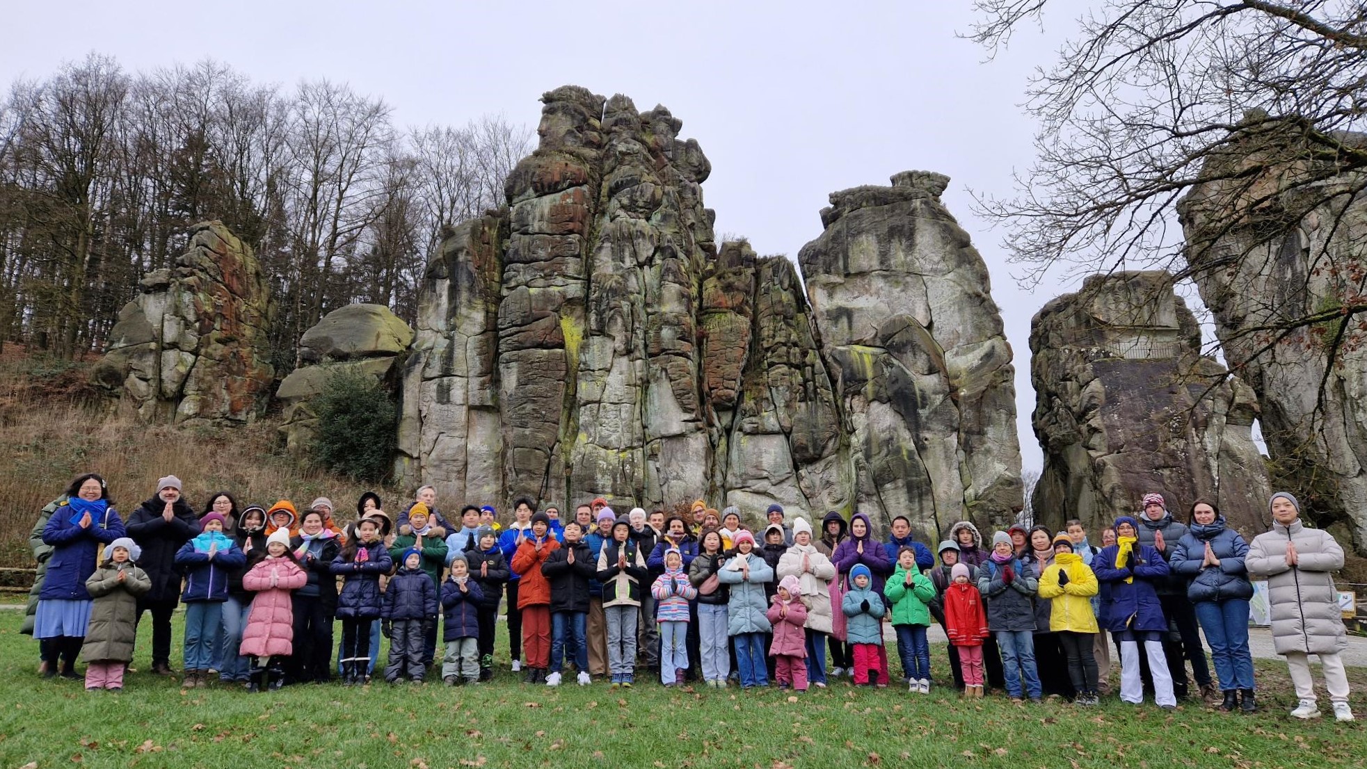 Svi su se na Novu godinu uputili na Externsteine Rocks. Ondje su demonstrirali pet setova Falun Dafa vježbi i dijelili letke i svoje ručno rađene papirnate lotosove cvijetove turistima. Djeca su se bavila borilačkim vještinama, a svi učesnici kampa su snimili fotografiju i video kako bi Učitelju Li Hongzhiju čestitali Novu godinu. Vrijeme je bilo hladno, pa su, dok su odrasli pili čaj da se zagriju, djeca bila u potrazi za blagom.