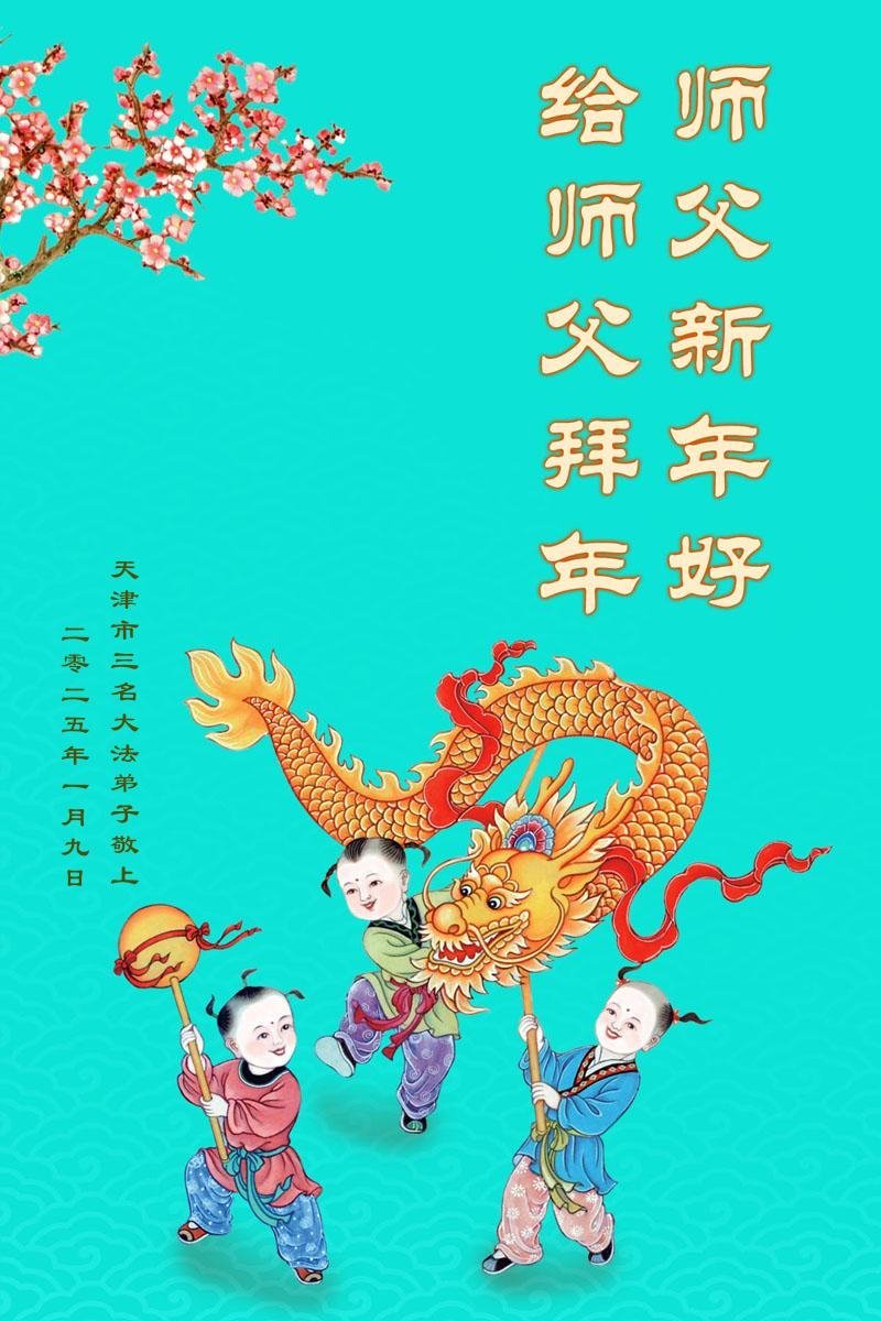Falun Dafa praktikanti iz Tjenđina s poštovanjem žele Učitelju Li Hongdžiju srećnu kinesku Novu godinu (19 čestitki)