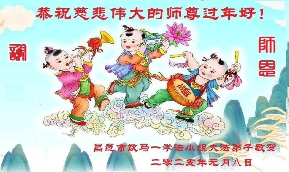 Falun Dafa praktikanti iz grada Vejfanga s poštovanjem žele Učitelju Li Hongdžiju srećnu kinesku Novu godinu (23 čestitke)
