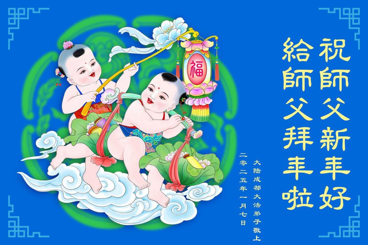Falun Dafa praktikanti iz grada Čengdua s poštovanjem žele Učitelju Li Hongdžiju srećnu kinesku Novu godinu (19 čestitki)