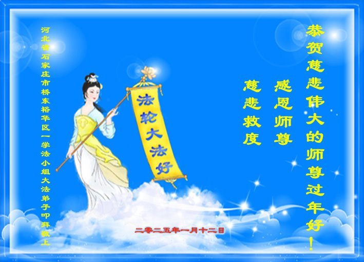 Falun Dafa praktikanti iz grada Šiđadžuang s poštovanjem žele Učitelju Li Hongdžiju srećnu kinesku Novu godinu (18 čestitki)