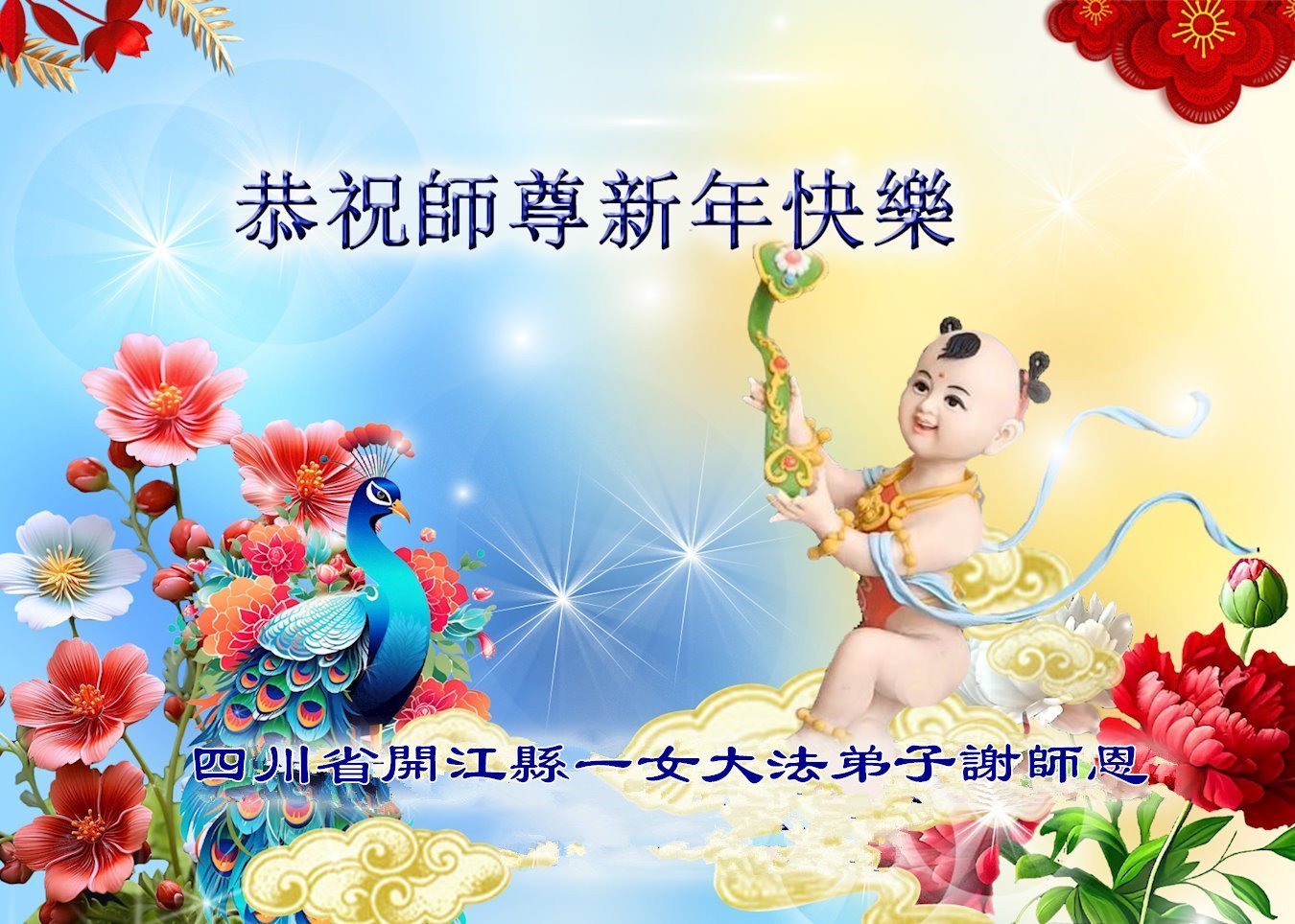 Falun Dafa praktikanti iz provincije Sečuan s poštovanjem žele Učitelju Li Hongdžiju srećnu kinesku Novu godinu (18 čestitki)