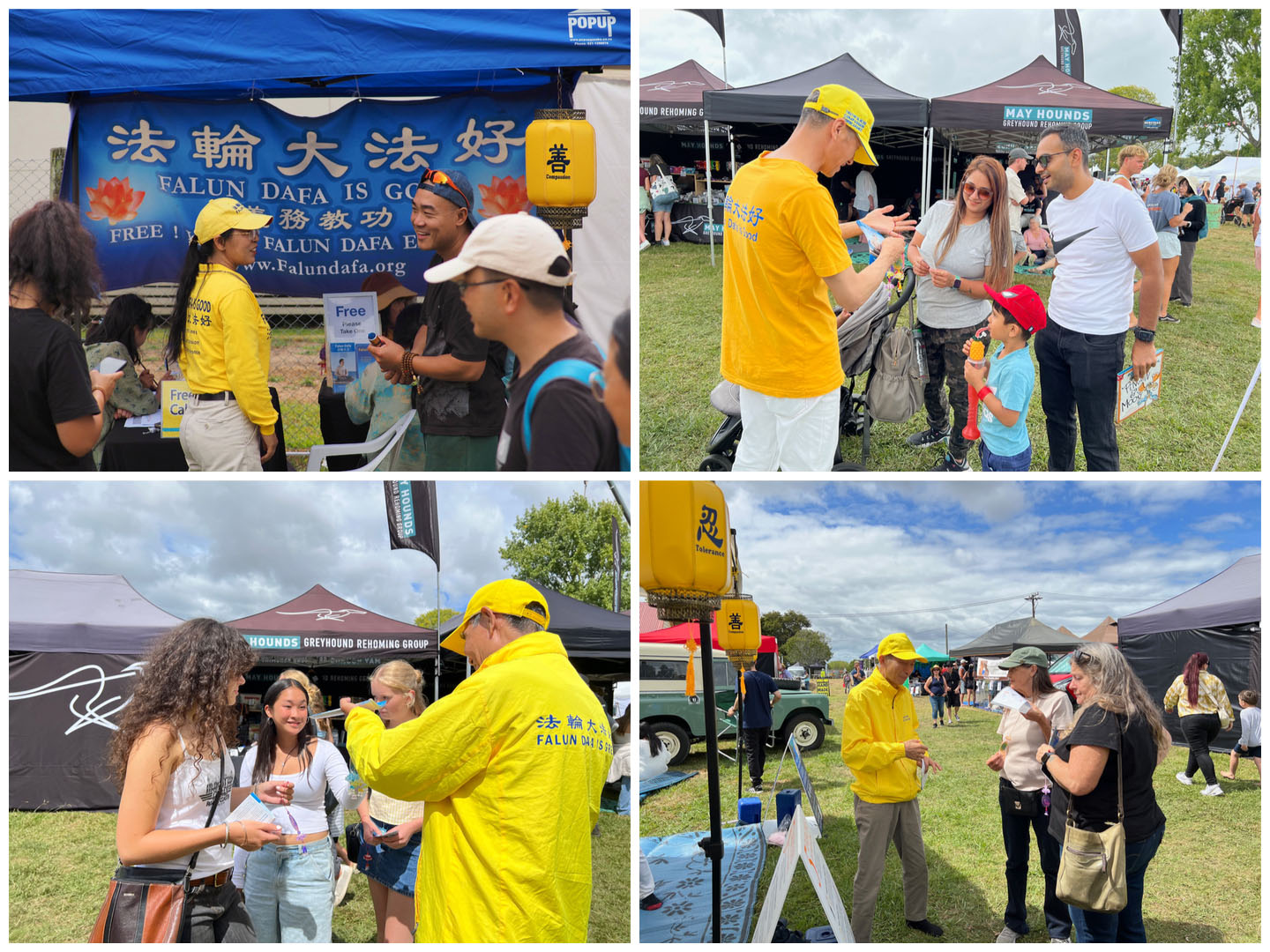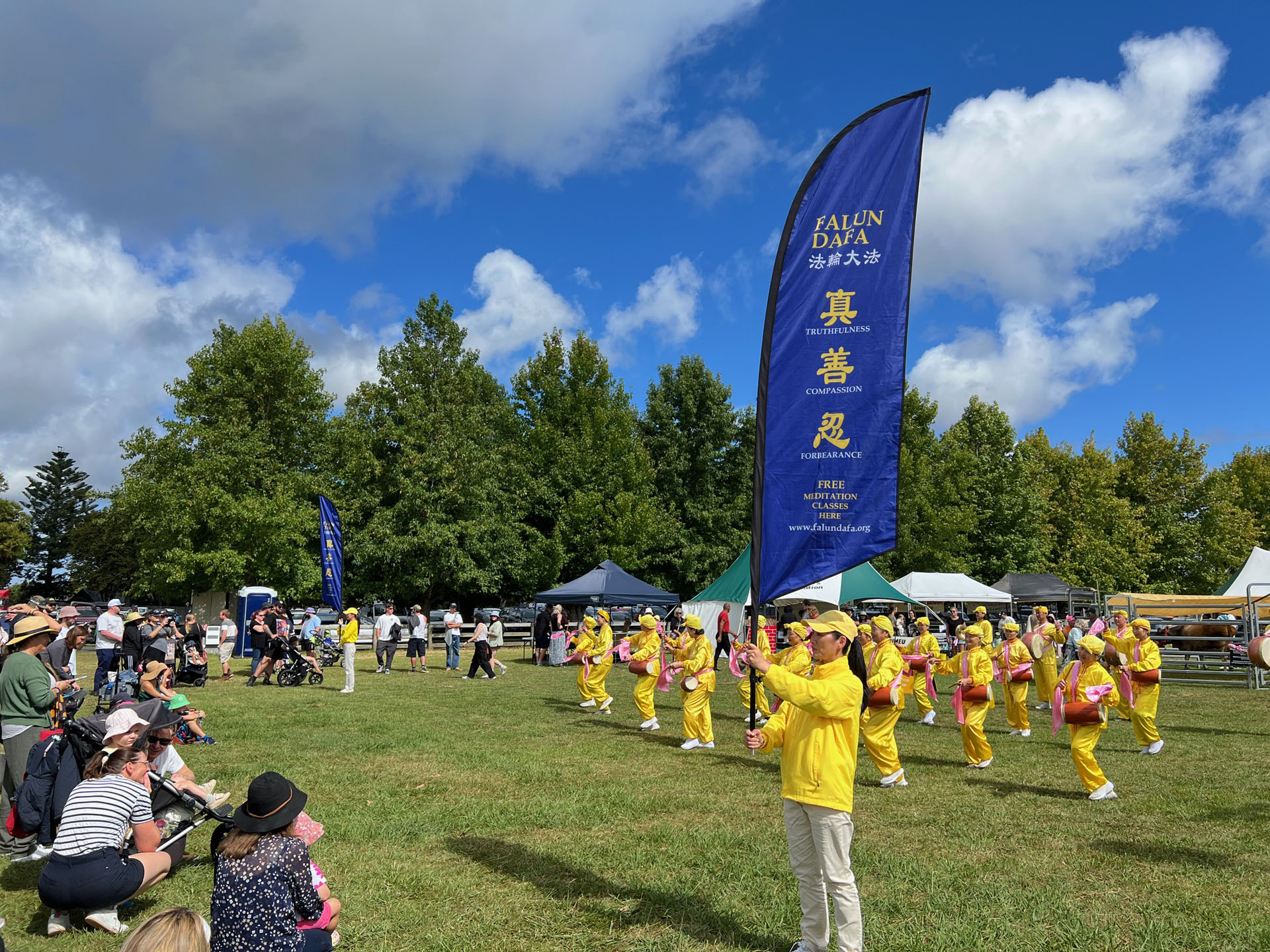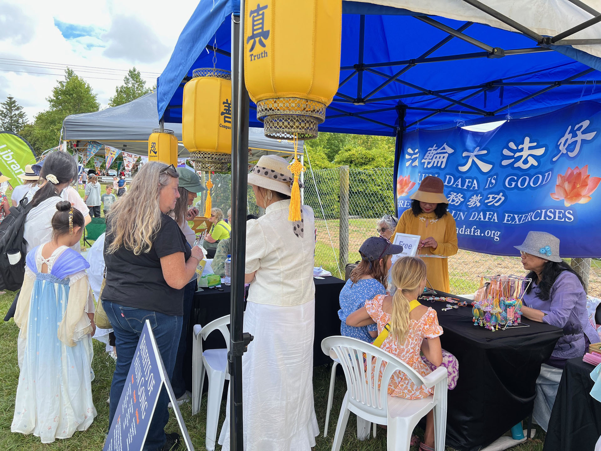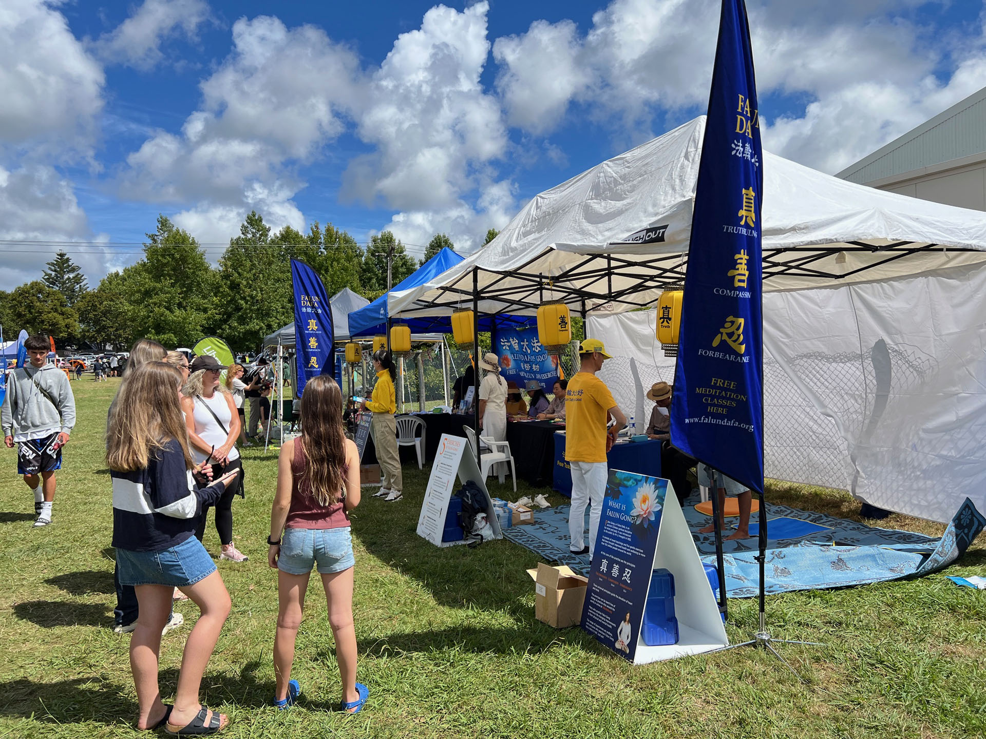 Falun Dafa praktikanti sudjelovali su na godišnjem sajmu Poljoprivrednog i hortikulturnog društva okruga Kumeu za vikend od 8. do 9. ožujka 2025. Ovaj popularni obiteljski događaj prikazuje poljoprivredu, izložbe životinja i natjecanja, glazbu i razne kulturne ponude. Falun Dafa štand je bio podijeljen u pet odjeljaka: kaligrafija, izrada origami lotosa, tradicionalno rezanje papira i demonstracije i podučavanje Falun Dafa vježbi . Mnogi su posjetitelji u subotu učili vježbe.
