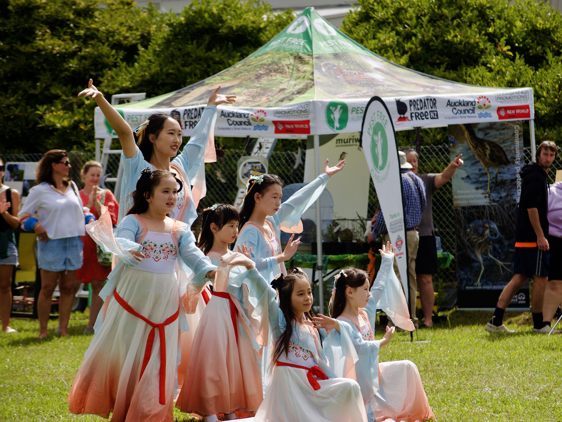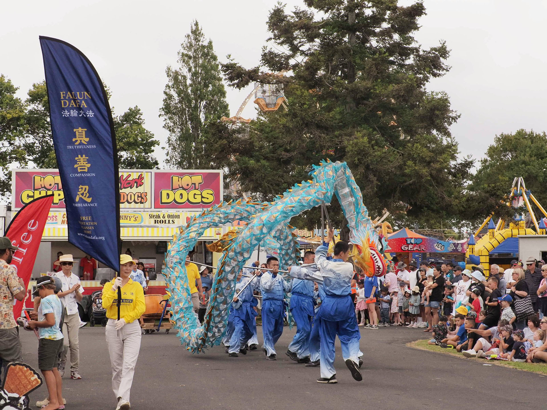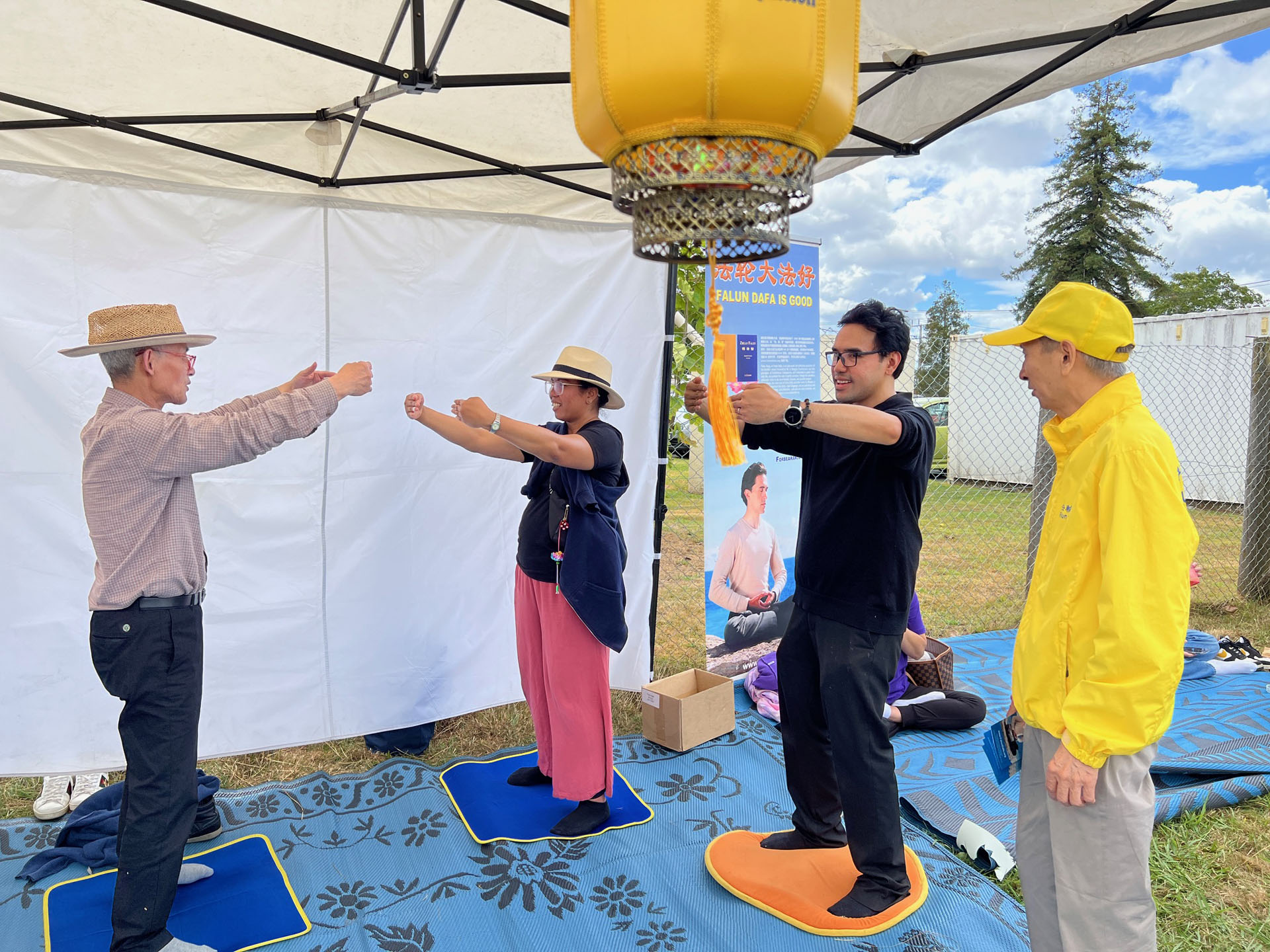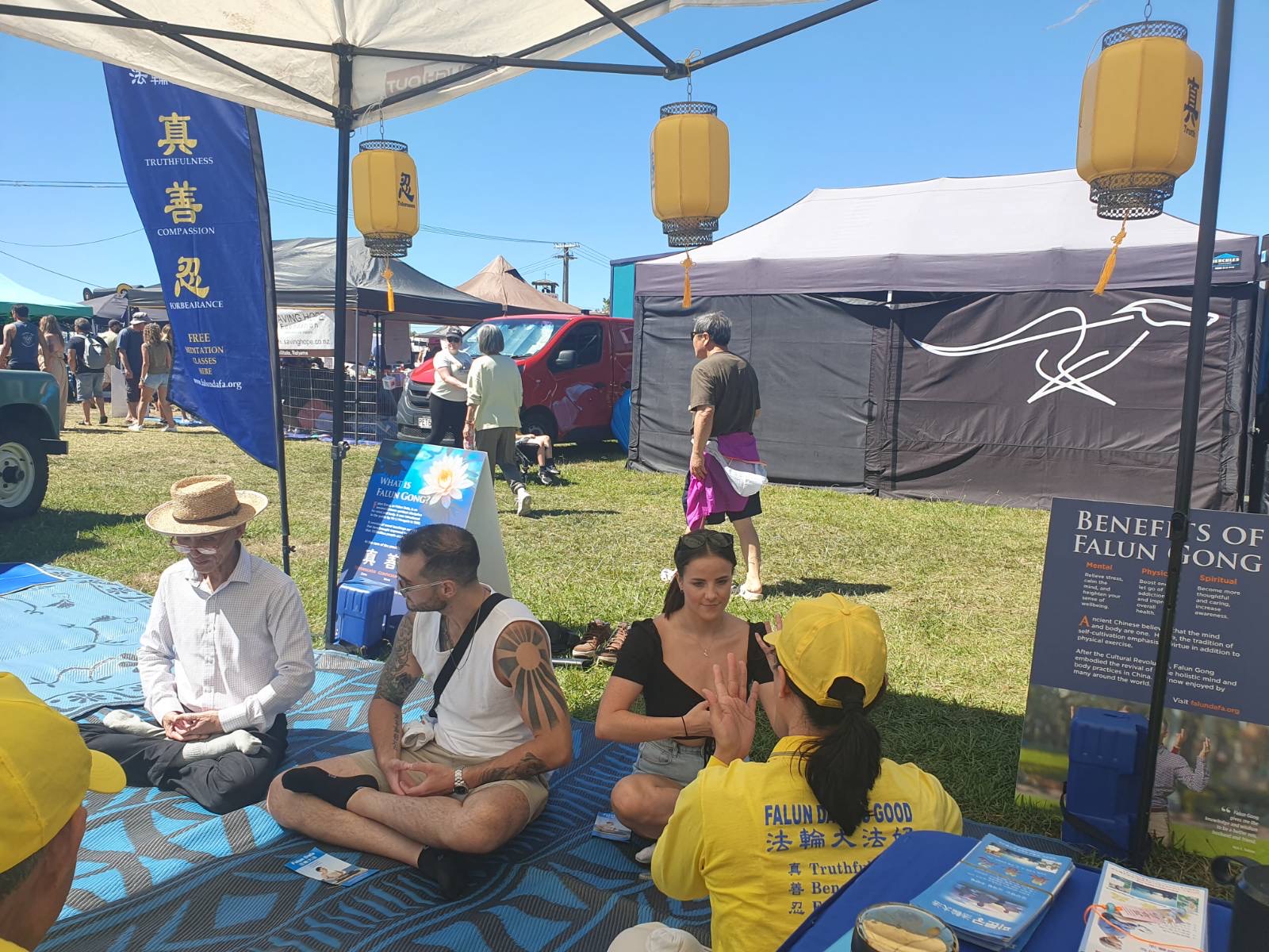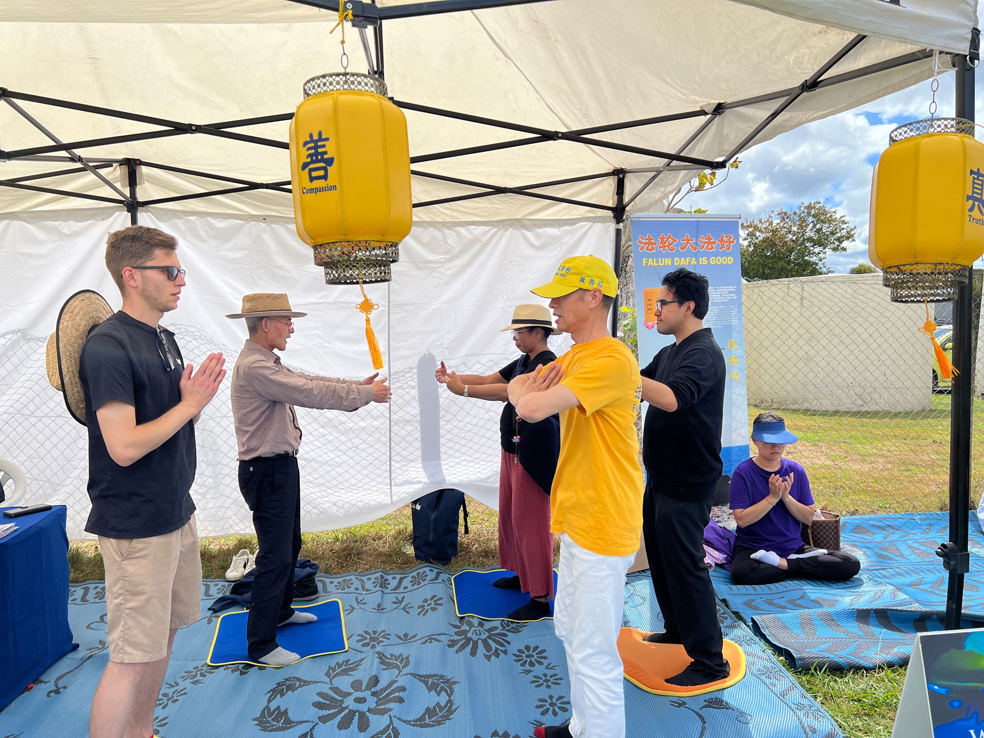 Falun Dafa praktikanti sudjelovali su na godišnjem sajmu Poljoprivrednog i hortikulturnog društva okruga Kumeu za vikend od 8. do 9. ožujka 2025. Ovaj popularni obiteljski događaj prikazuje poljoprivredu, izložbe životinja i natjecanja, glazbu i razne kulturne ponude. Falun Dafa štand je bio podijeljen u pet odjeljaka: kaligrafija, izrada origami lotosa, tradicionalno rezanje papira i demonstracije i podučavanje Falun Dafa vježbi . Mnogi su posjetitelji u subotu učili vježbe.