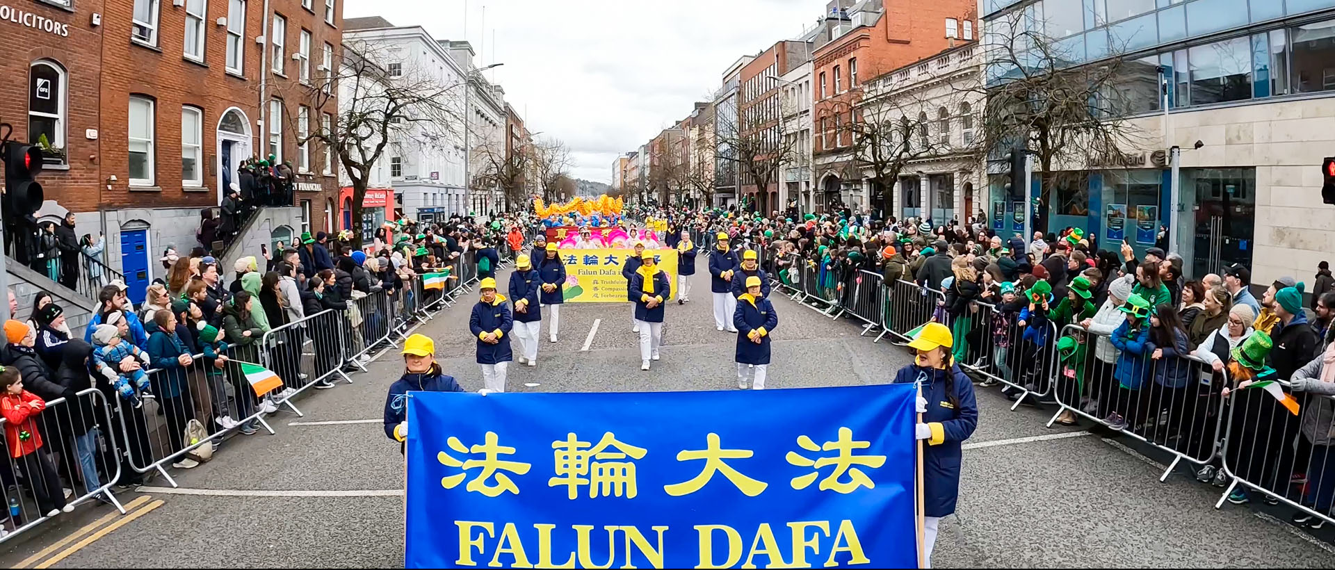 Praktikanti su 16. marta učestvovali u proslavi povodom Dana sv. Patrika u Dublinu, glavnom gradu Irske. Praktikanti su nosili tradicionalne raznobojne nošnje i za publiku izveli ples lotosa i lepeza. Demonstrirali su i Falun Dafa vježbe. Jednostavne vježbe koje se lako uče su inspirisale mnoge članove publike da prate praktikante i rade vježbe.