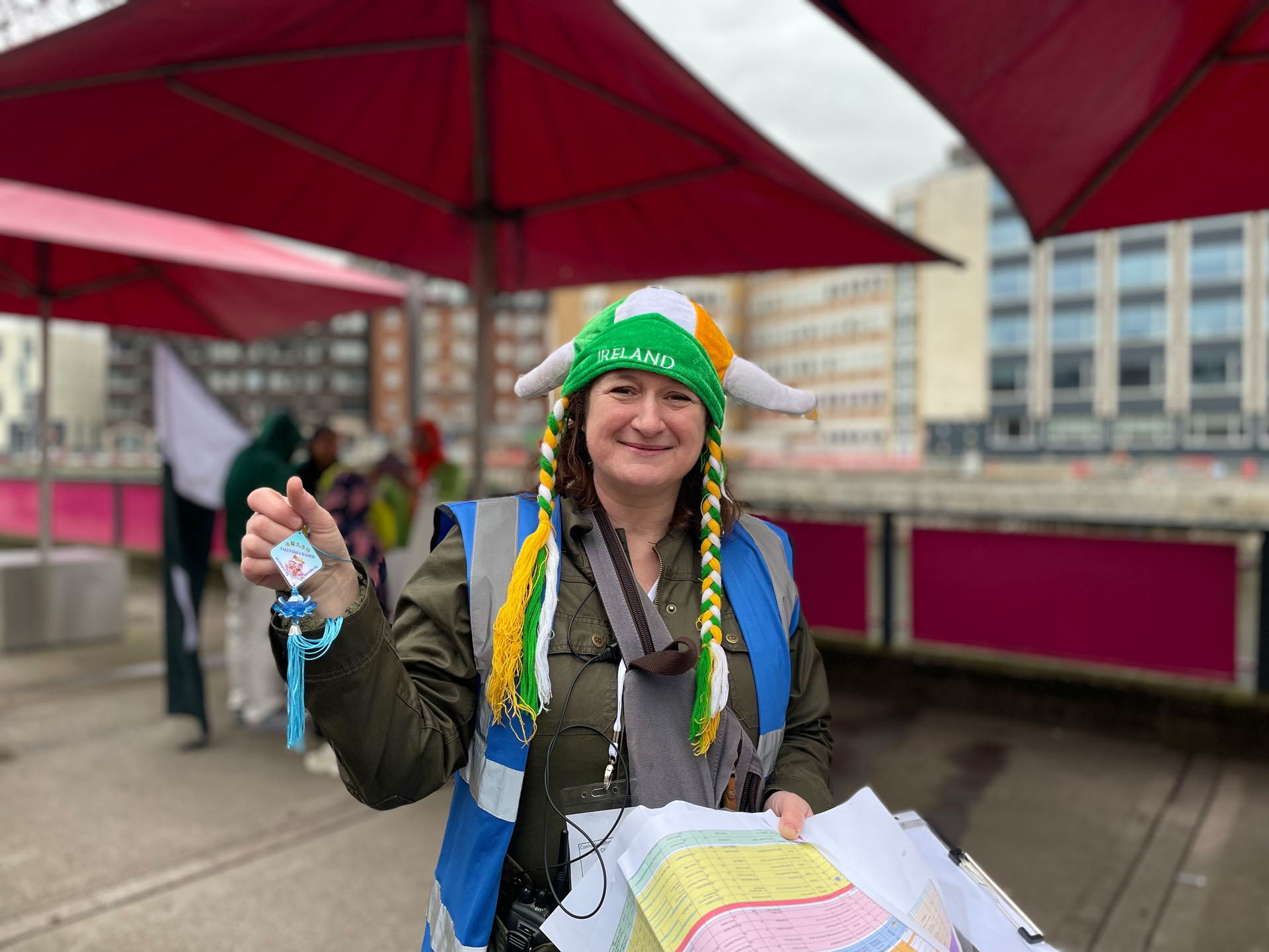 Dva ili tri sata prije početka parade, ljudi u zelenim majicama, zelenim šeširima ili dodacima za kosu su se u grupam pojavili a s obje strane ulice. Neki gledaoci su bili voljni doći ranije, u prostor gdje se parada priprema, kako bi kratko zavirili.