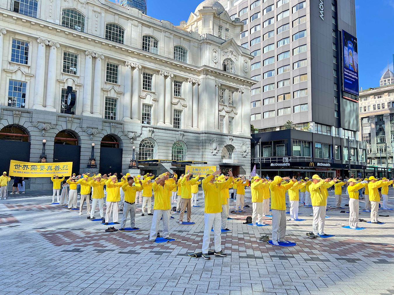 Praktikanti su u subotu 29. marta 2025. održali manifestaciju u Auckland's Commercial Bayu i kroz demonstracije vježbi i informativne panele predstavili Falun Dafa. Neki ljudi su tako vježbe naučili na licu mjesta.