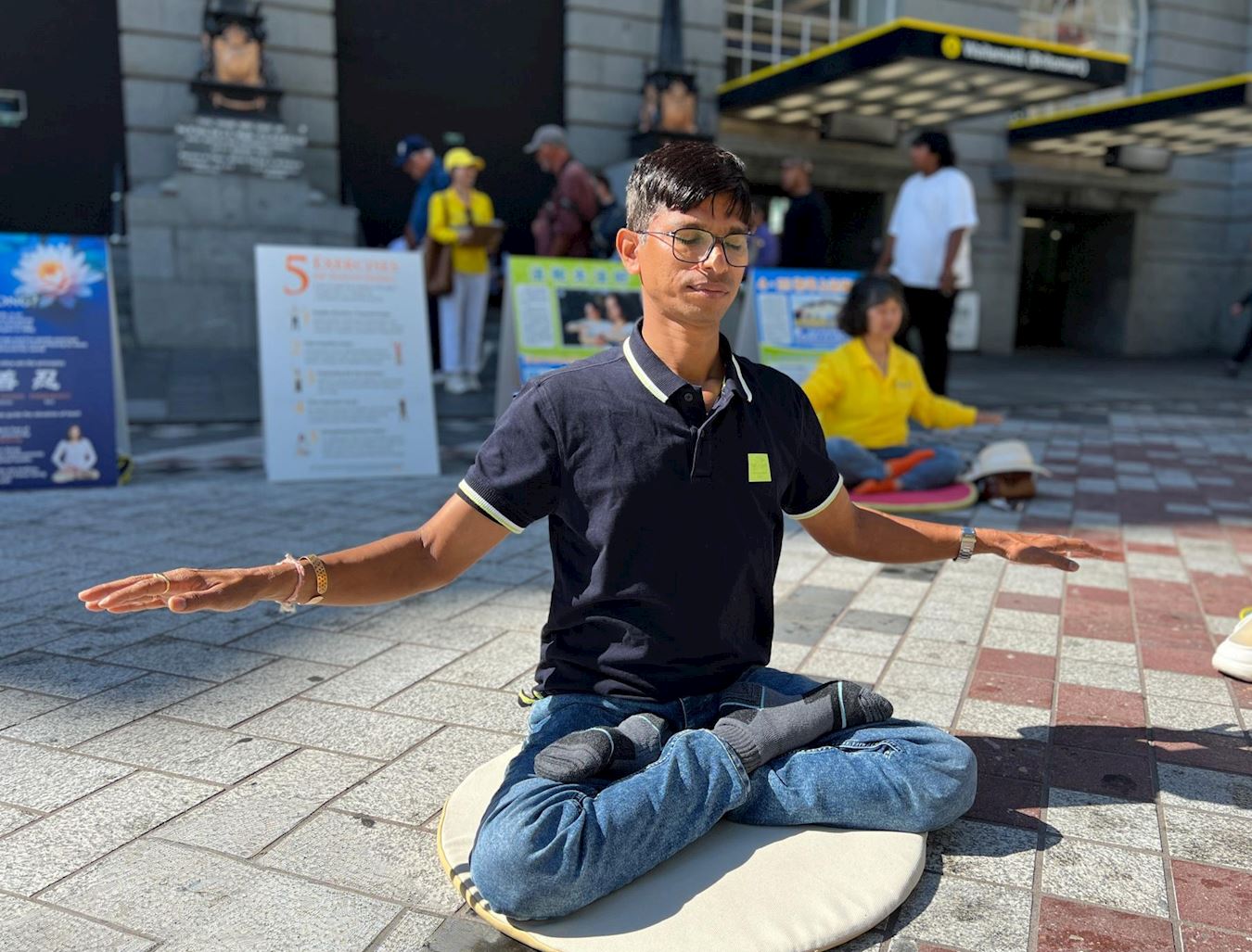 Kapia, IT programer iz Indije, je rekao da je meditacija važan dio njegovog života. Nedavno je upoznao praktikante koji su tokom jednog događaja predstavljali Falun Dafa i naučio pet vježbi. Došao je danas da radi grupne vježbe. Uzbuđeno je rekao: "Dopada mi se Falun Dafa – to me izazvalo da prakticiram kultivaciju. Upravo sada, dok sam s drugima radio sjedeću meditaciju, osjećao sam se kao da sjedim u ogromnoj lopti ispunjenoj energijom. Osjećam snažnu energiju. Ovo energetsko polje nam pomaže u našoj meditaciji."