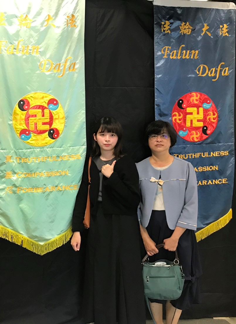 He Ziyu i njena majka prisustvuju Falun Dafa konferenciji za razmjenu iskustava.