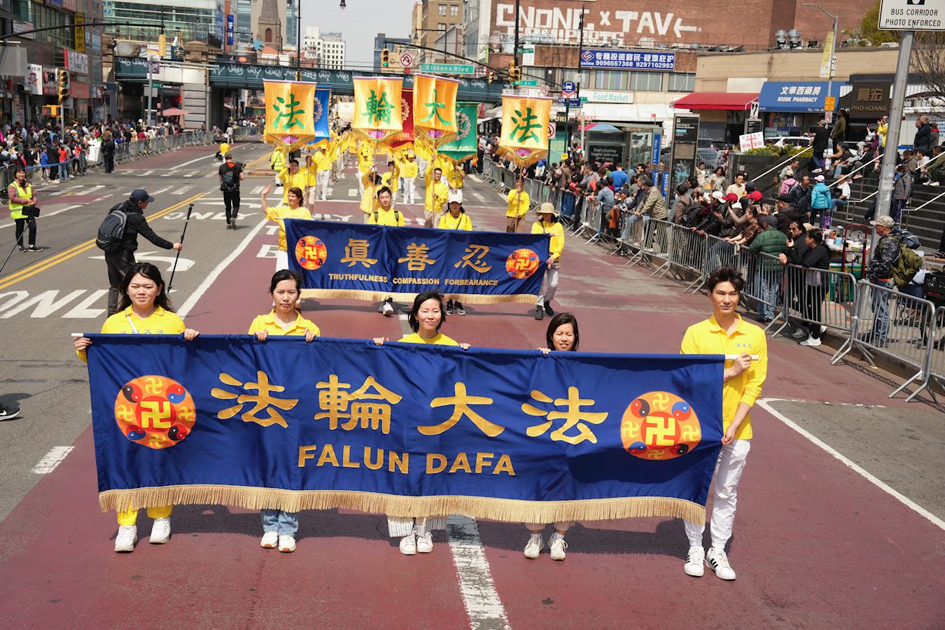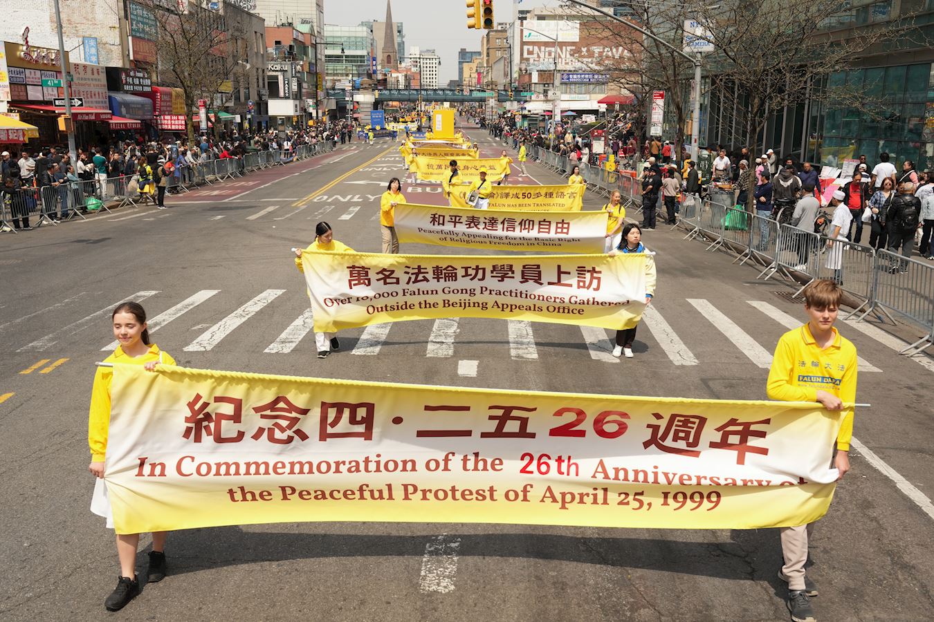 Svake godine Falun Gong praktikanti održavaju veliku paradu u Flushingu u znak sjećanja na ovaj veličanstveni događaj – Mirovni apel 25. aprila 1999.
