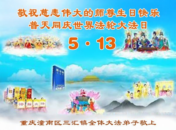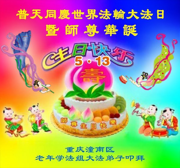 Falun Dafa praktikanti iz Čongkinga žele poštovanom Učitelju srećan rođendan i proslavljaju Svetski dan Falun Dafe!