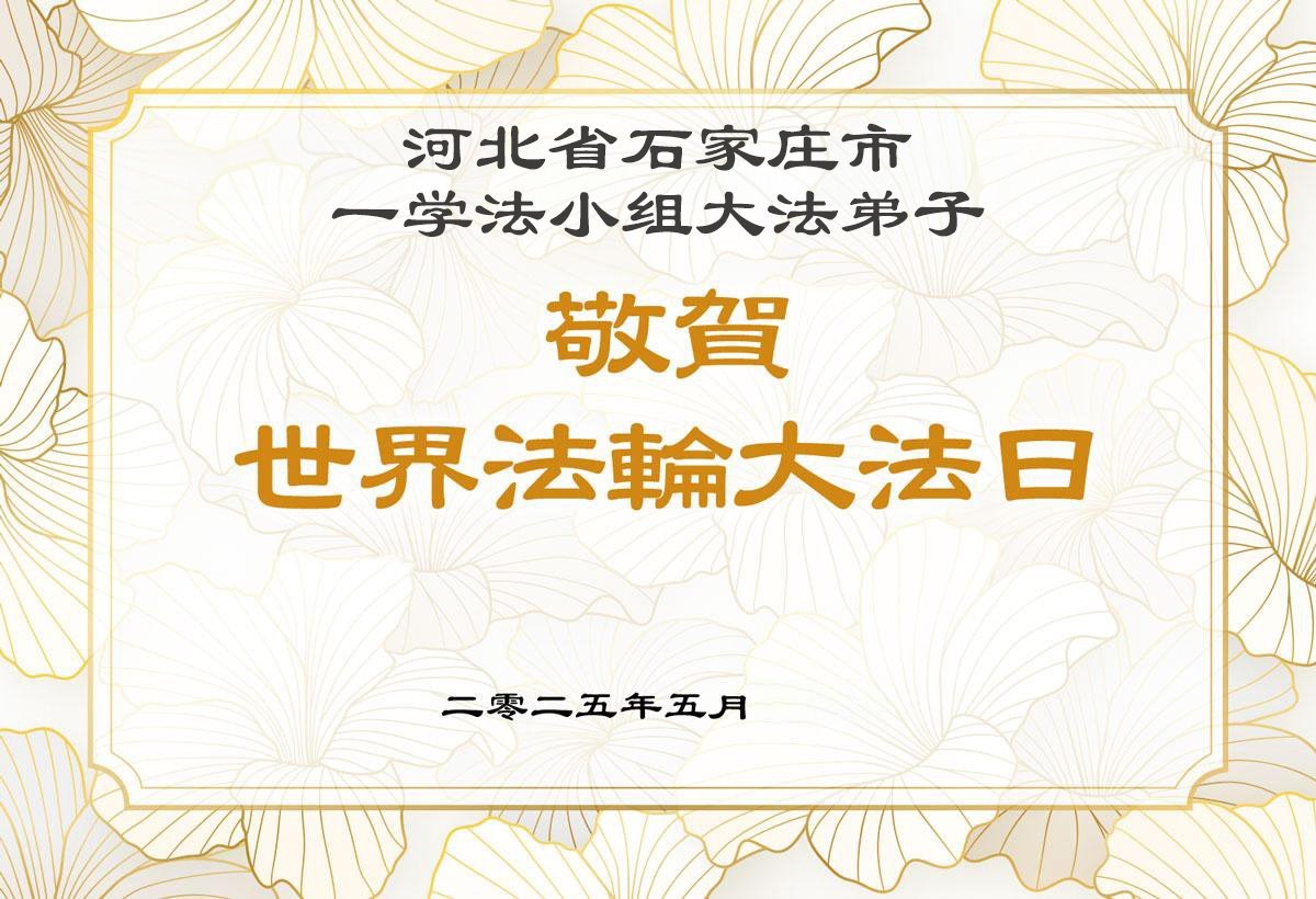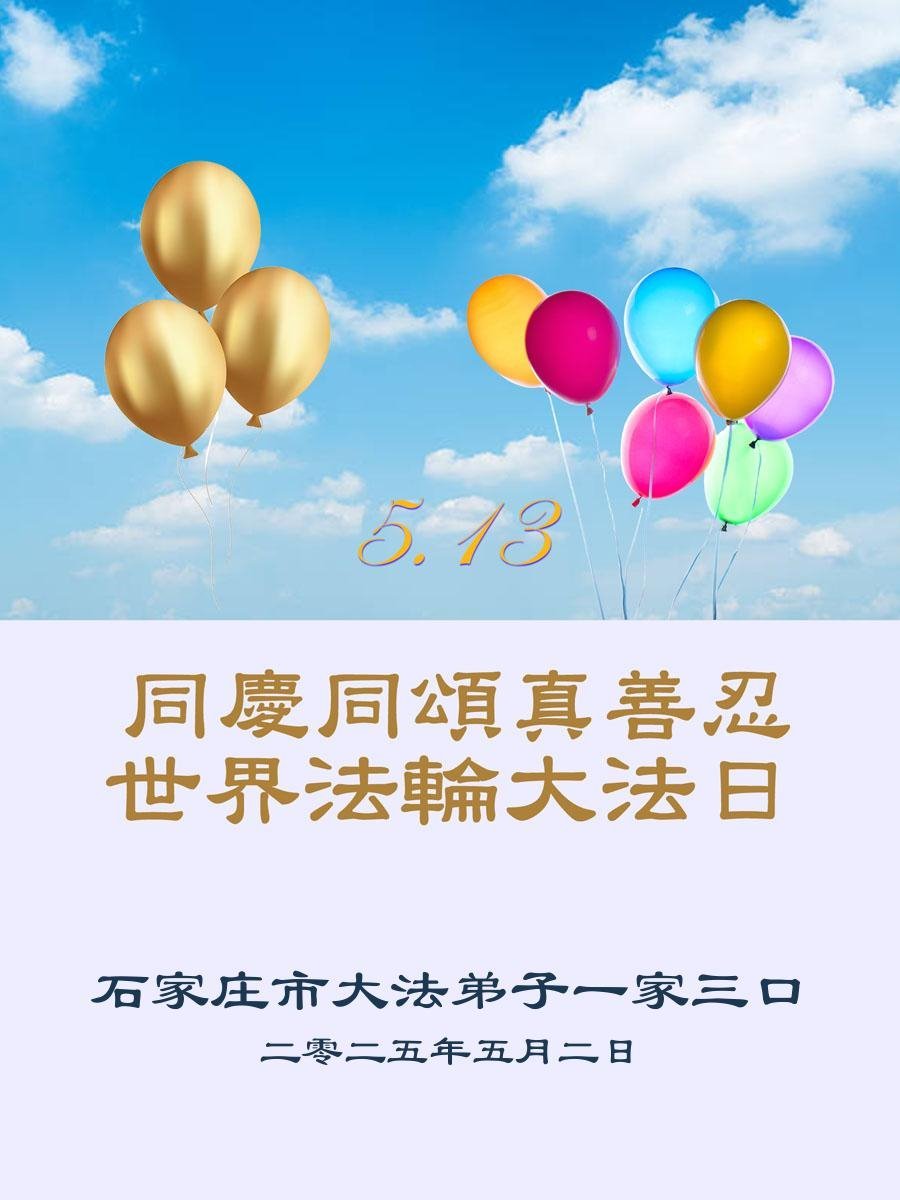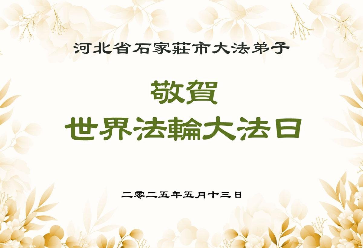 U ovom izveštaju predstavljamo izbor od 19 čestitki koje su poslali praktikanti Falun Dafe iz grada Šiđadžuang, provincija Hebej, Kina, povodom proslave posebnog događaja 13. maja 2025. godine: 26. Svetskog dana Falun Dafe i rođendana Učitelja Li Hongdžija.
