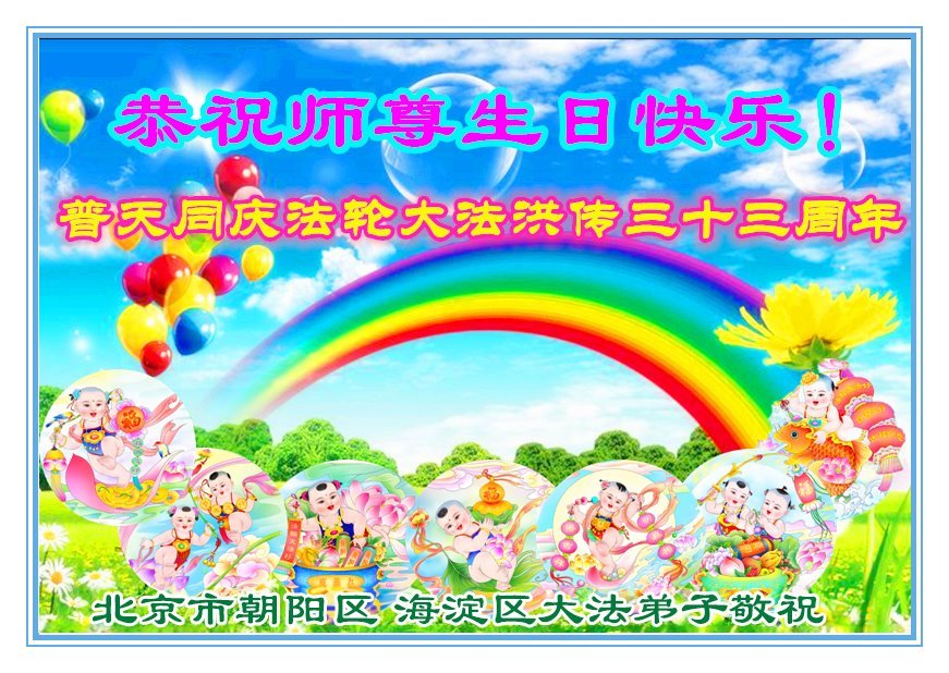 Oni iskazuju svoju beskrajnu zahvalnost Učitelju Liju što je 1992. godine predstavio Falun Dafu javnosti i što ih je vodio i štitio na njihovom putu kultivacije. Žele Učitelju Liju srećan rođendan i zavetuju se da će se čvrsto kultivisati i probuditi savest još ljudi da budu dostojni Učiteljevog mukotrpnog spasenja.